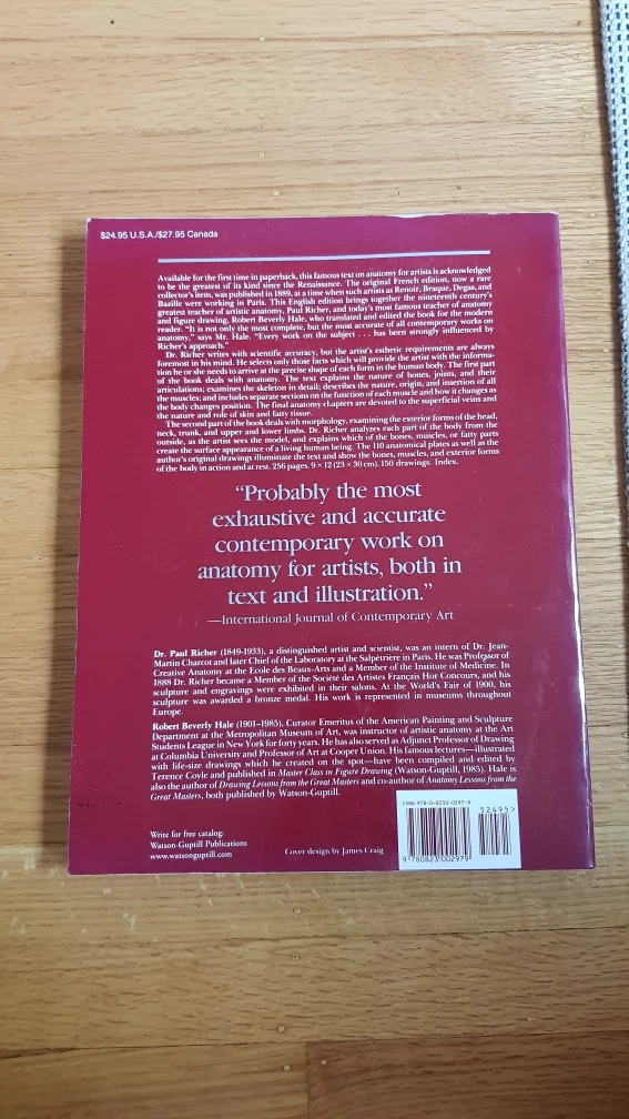 Selling a copy of Artistic Anatomy by Dr. Paul Richer. It's a great resource for artists! It is translated and edited by Robert Beverly Hale. The book covers anatomy for artists, with detailed illustrations and explanations of the human body. Great for anyone studying art or anatomy