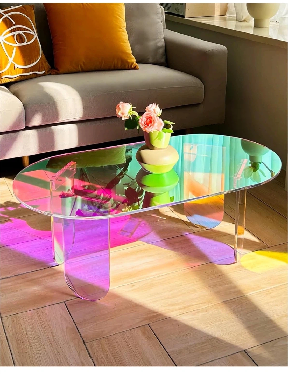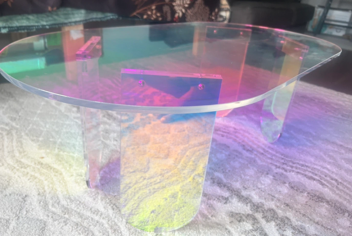 Artloge Iridescent Acrylic Coffee Table: Modern Chic Colorful Table Clear Desk, Accent Nightstand Sofa Couch Side Table Decorative Home Art Deco Furniture Set for Livingroom. It has some scratches but not easily visible because of flair reflective colors effect Brand new going for 189$+ tax Selling for 95$