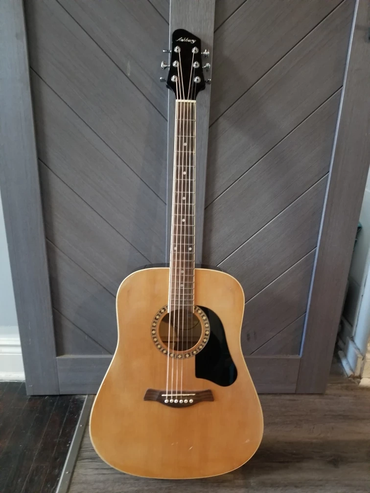 Selling an Ashbury acoustic guitar, model AG-500. It's in great shape and ready for a new home! Designed in Canada and hand crafted in China, it has a lovely tone and is perfect for beginners or experienced players alike