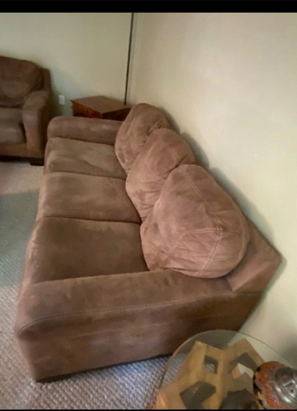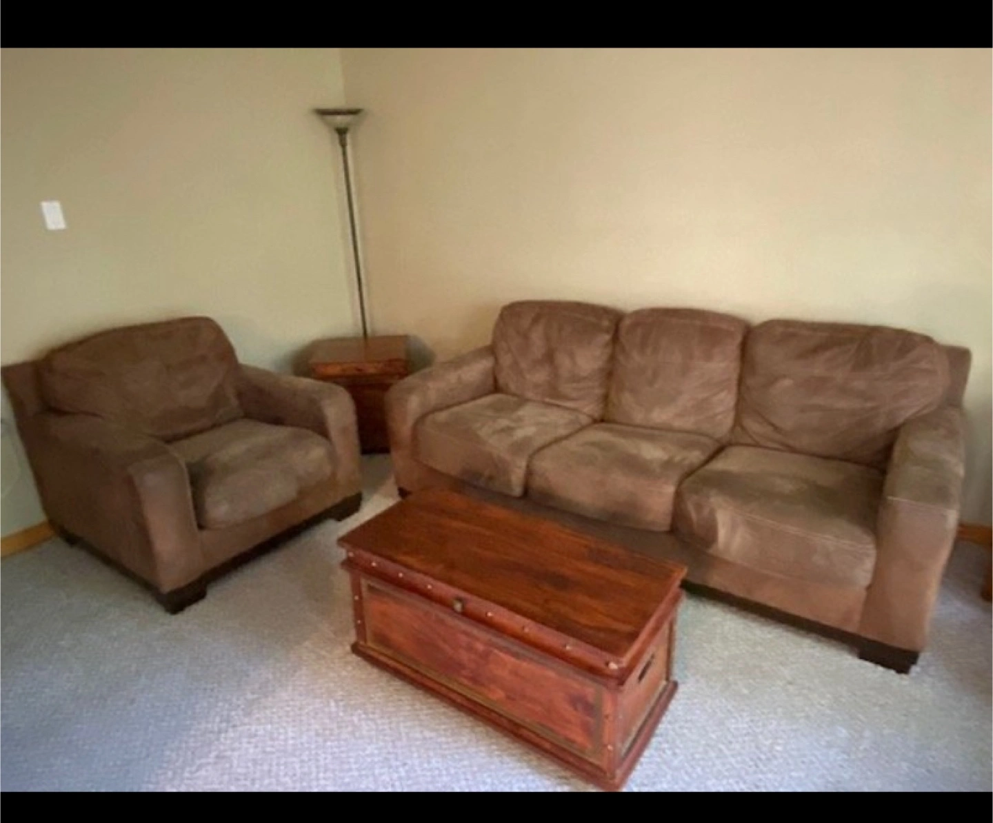 This furniture set for sale is a 2-piece Kylun - Saddle Sofa and Arm Chair from Ashley Furniture. These pieces are from the Kylun Collection of Signature Design by Ashley, Contemporary design. Kylun - Saddle by Ashley Furniture Comfort comes together with contemporary style with this faux leather upholstery collection. Warm saddle finish, Jumbo stitching accents, Frame constructions tested with various equipment, Home and transportation environments simulated to insure durability, Corners are glued, blocked and stapled, Stripes and patterns are match cut, Pre-approved fabrics for wearability and durability against AHFA standards, Constructed of low melt fiber wrapped over high quality foam cushion cores. This furniture set is used but in good condition.