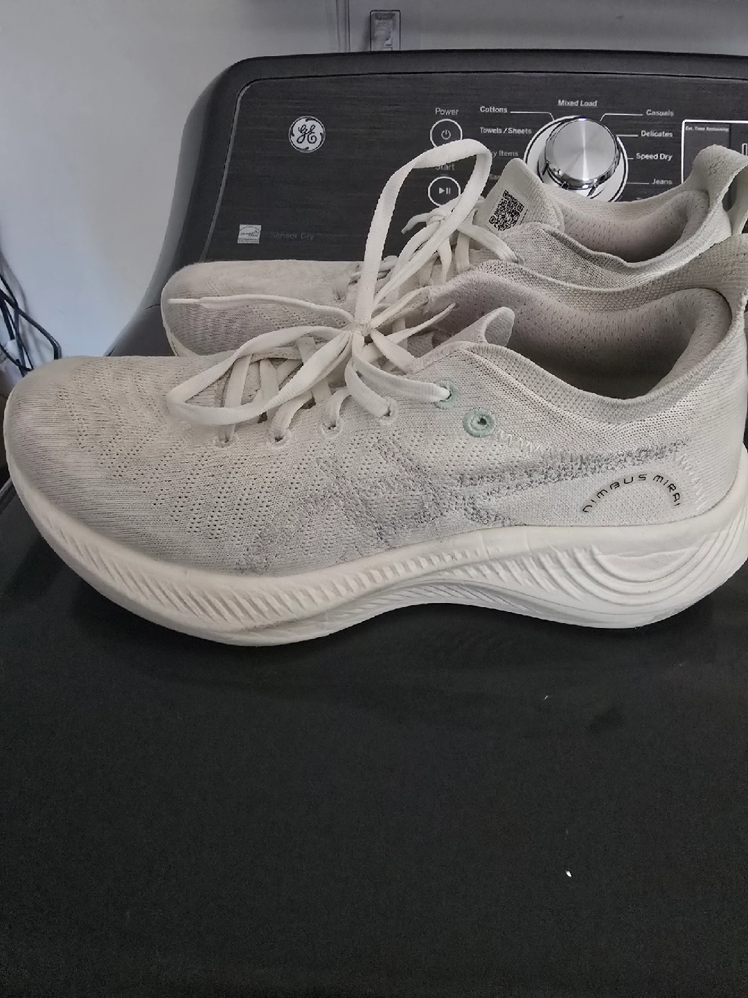 Selling a pair of Asics Nimbus Mirai running shoes in a light grey colour! They are in great condition and ready for a new home.