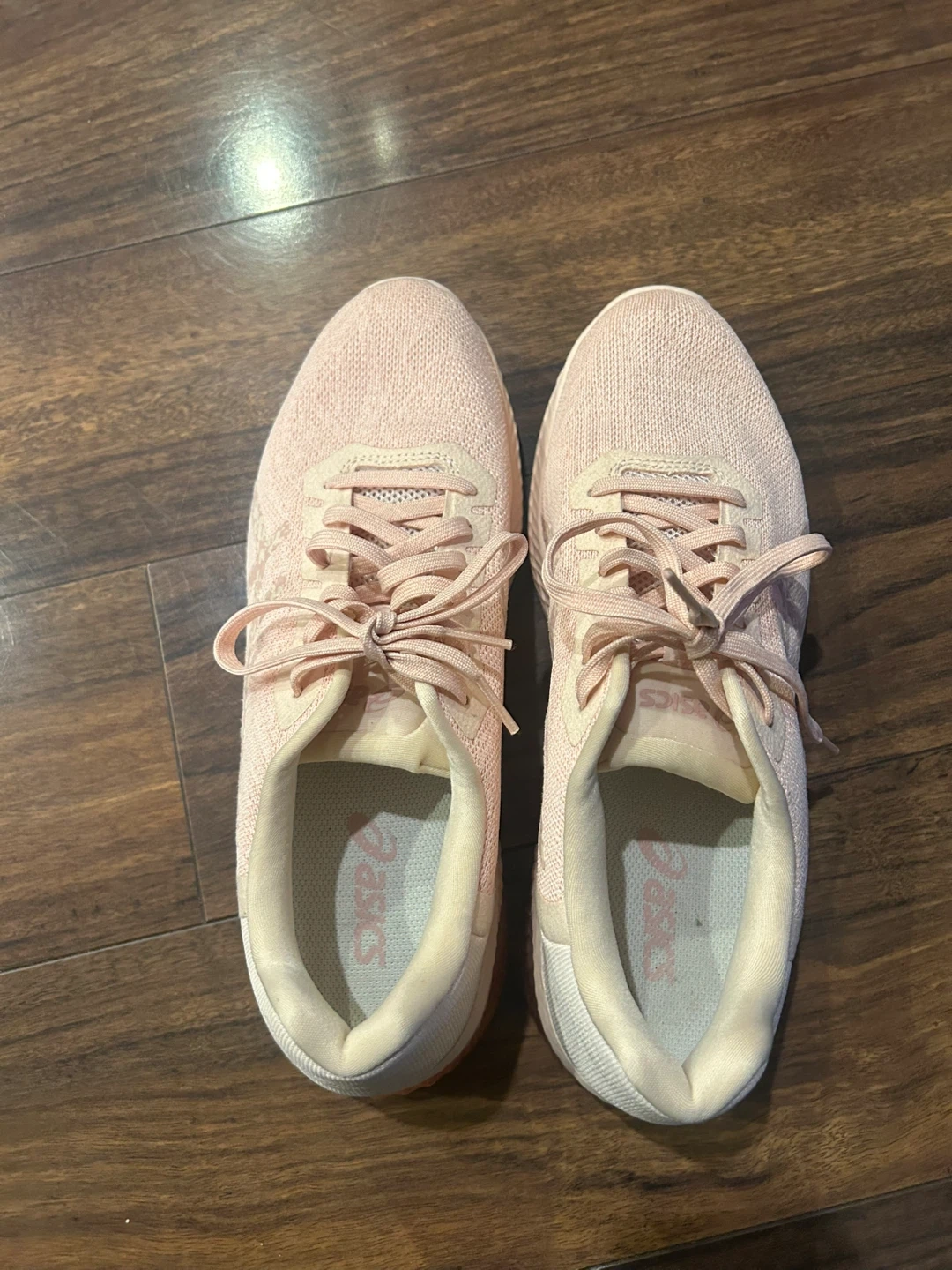 Selling a pair of Asics running shoes in women's size 8.5. They're in great shape and ready for your next run! The shoes are a lovely shade of pink.