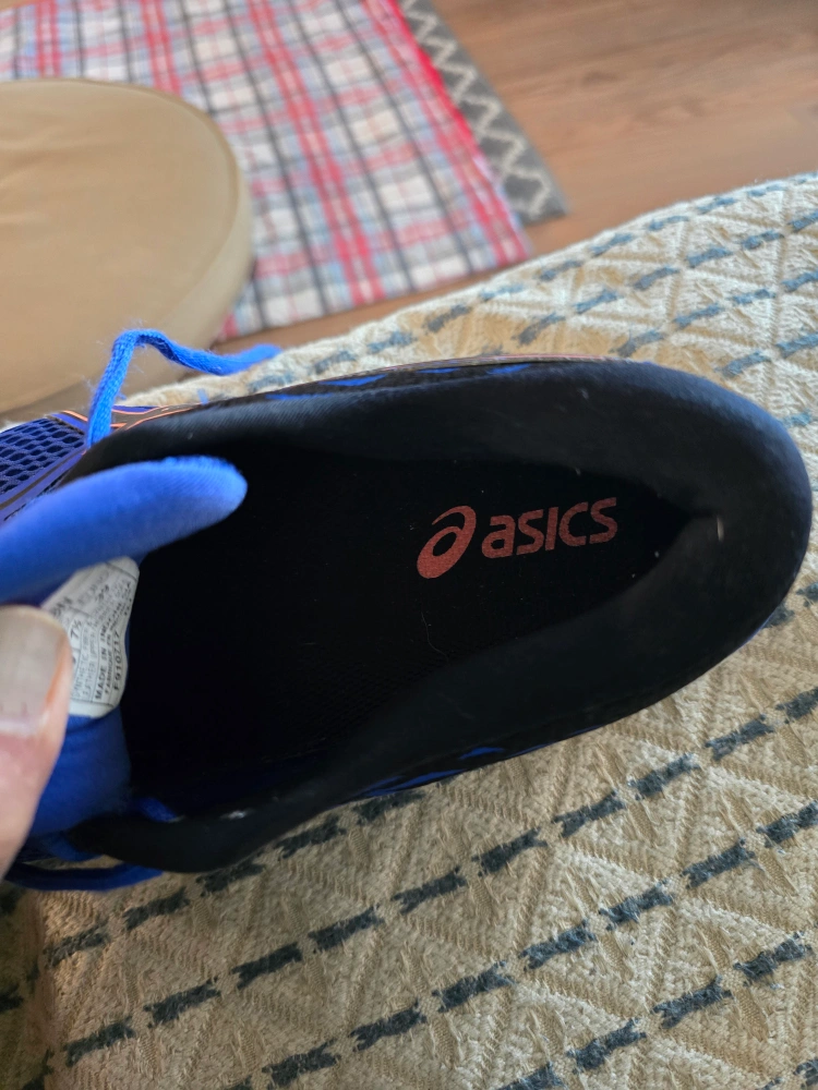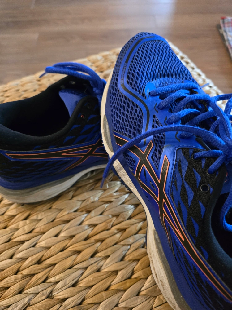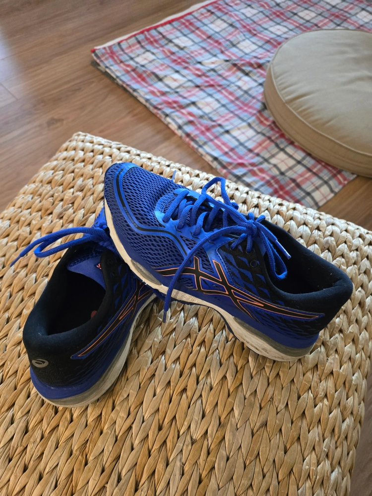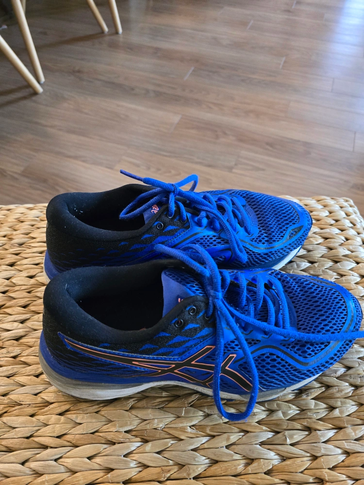Selling a pair of Asics running shoes in blue! The size is US 7.5. They're in good condition and ready for your next run