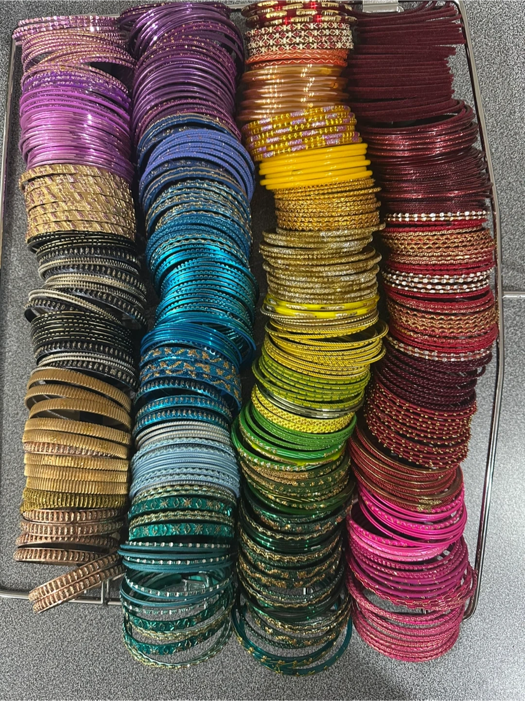 Selling a collection of assorted bangles in various colours and designs! Used for display for bangle ceremony. Perfect for return gifts for poojas, diwalis or adding to your collection! Pickup in Brampton. Selling whole collection