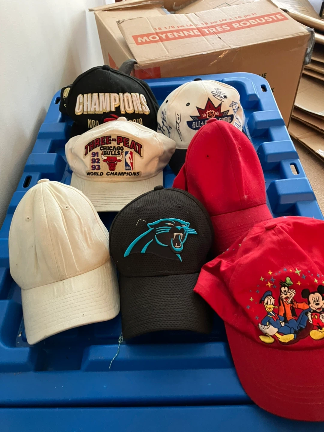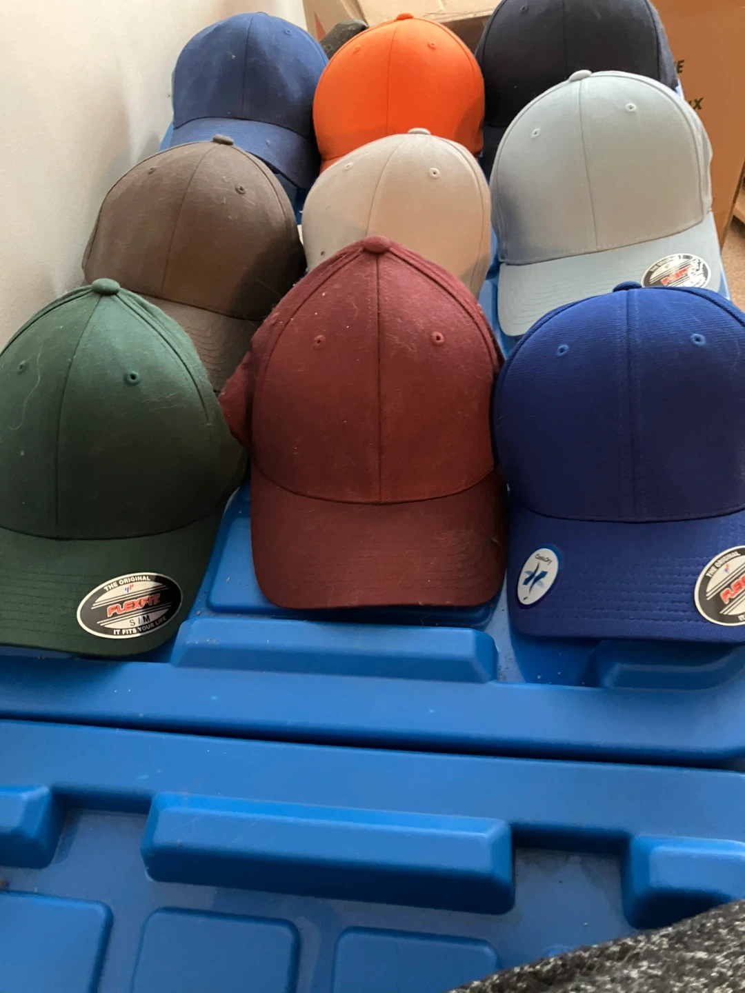 A collection of used baseball caps and beanies in various colours and designs. Some are fitted, and some are adjustable. Great for sports fans or anyone looking to add to their hat collection!