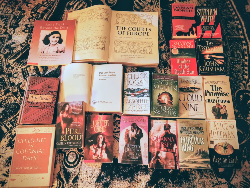 I'm giving away a collection of various books. Includes titles such as: - Anne Frank Beyond the Diary - The Courts of Europe - Stephen White Remote Control - John Grisham The Testament - George R.R. Martin A Storm of Swords (Game of Thrones) - Alice Hoffman Here on Earth - And more!