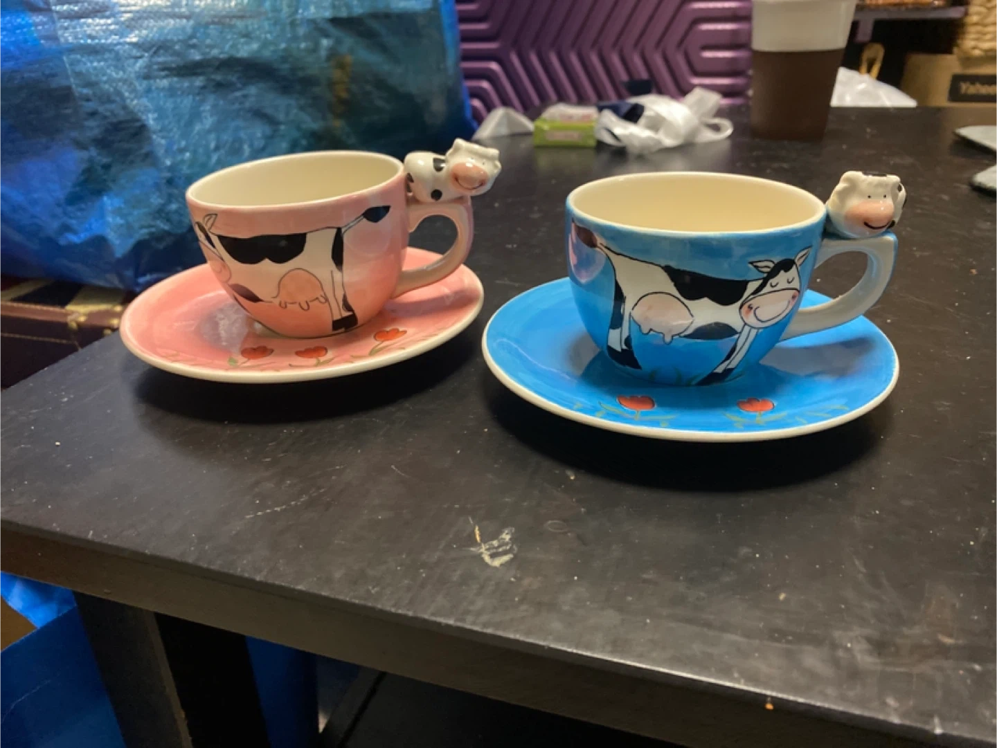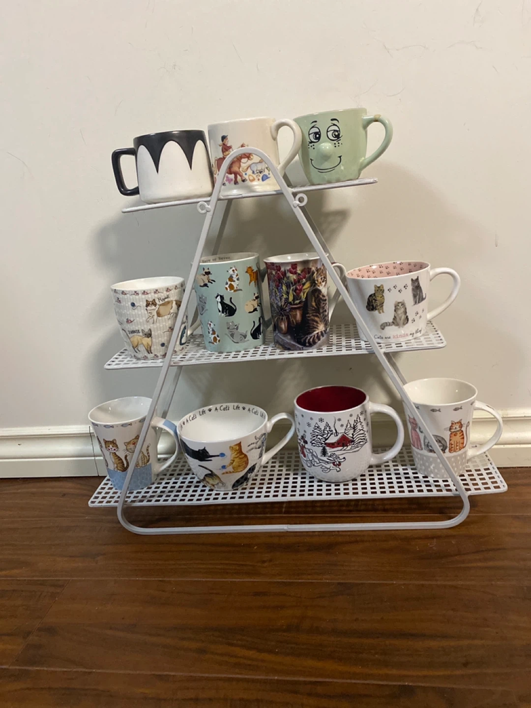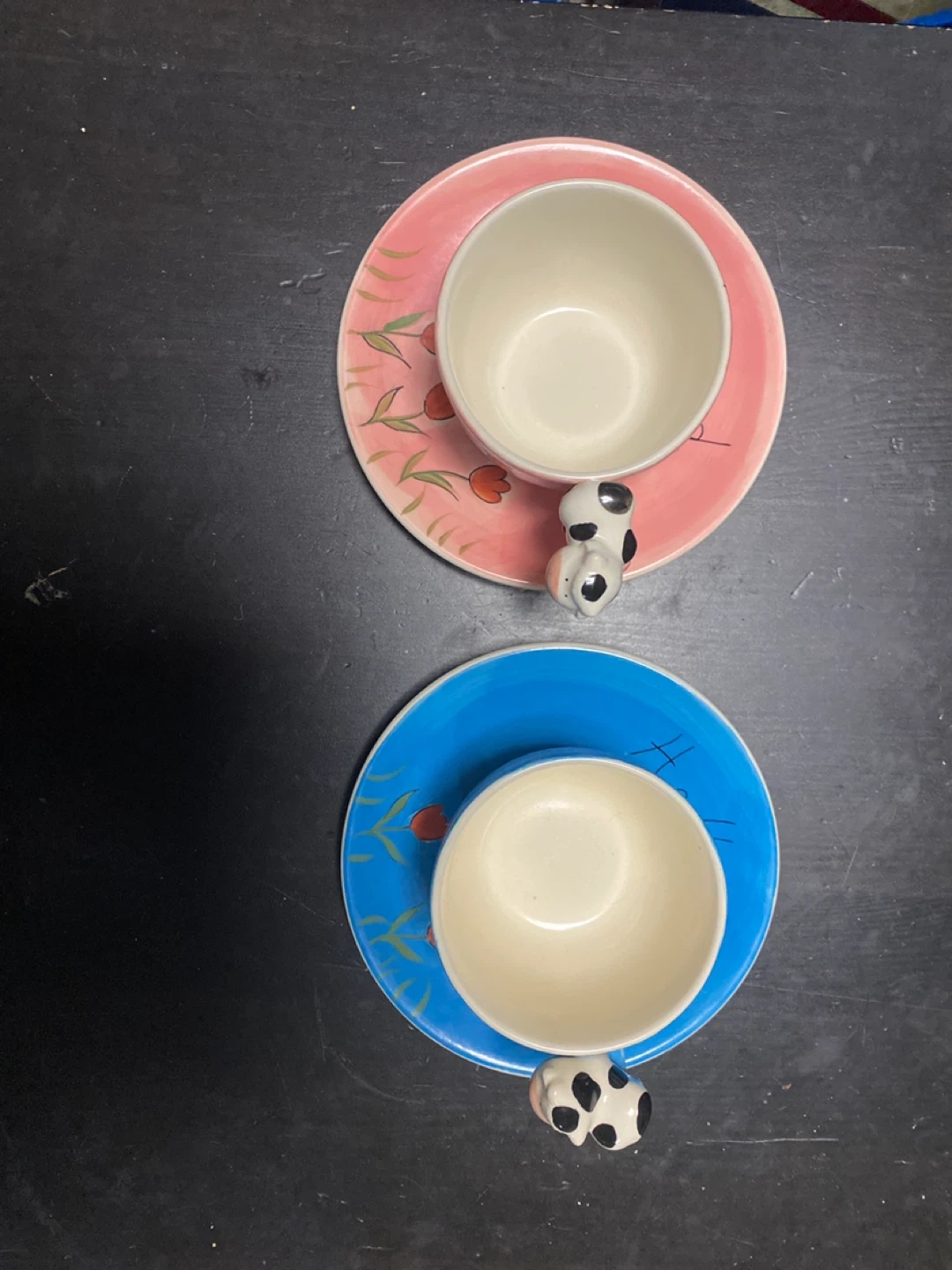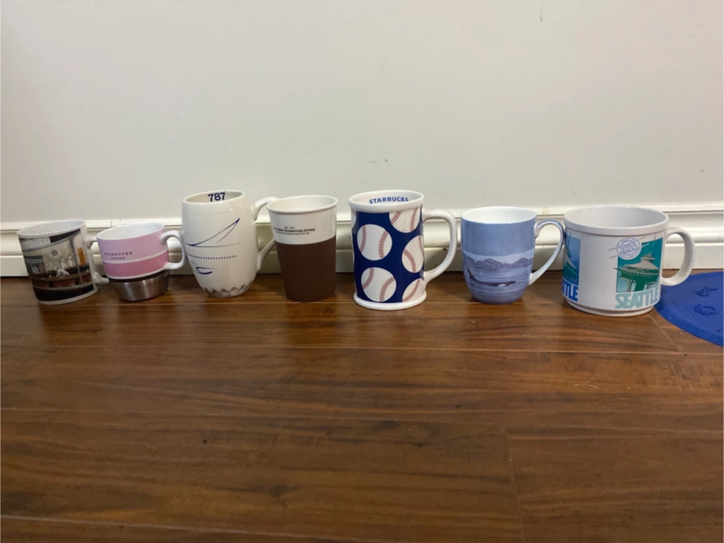 Selling a collection of assorted coffee mugs and tea cups. There are various designs, including Starbucks mugs and some with unique animal-shaped handles. Perfect for adding some variety to your kitchen collection