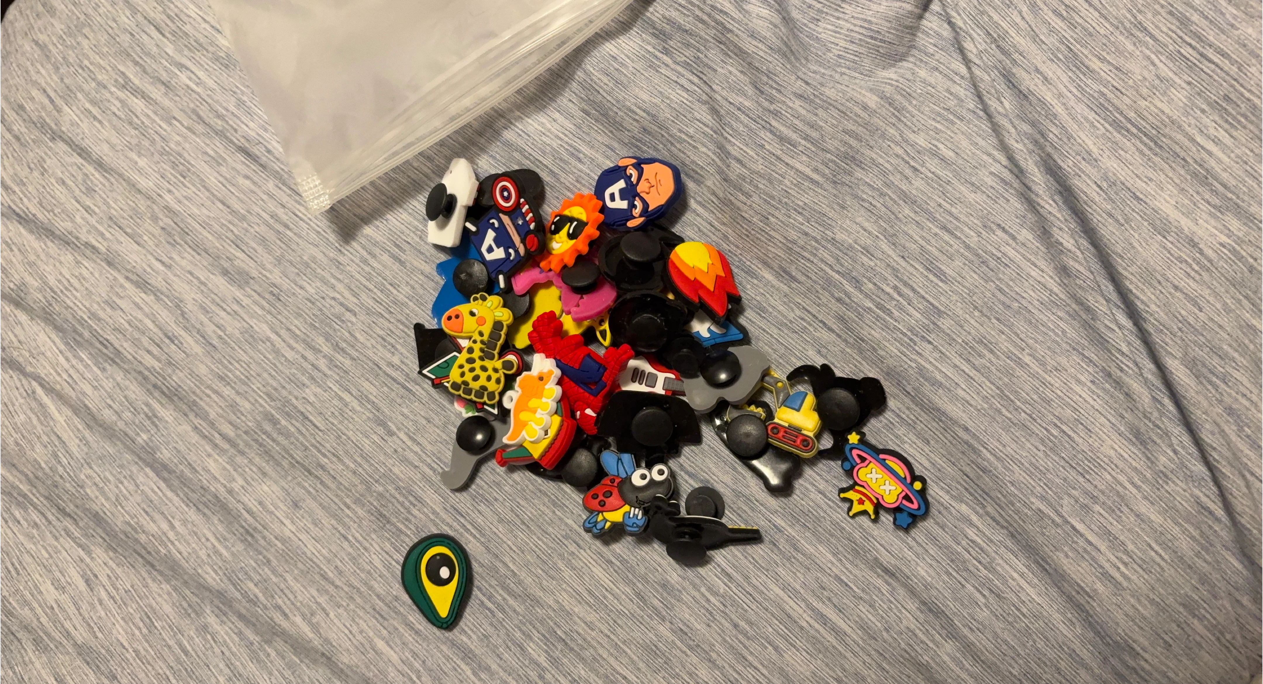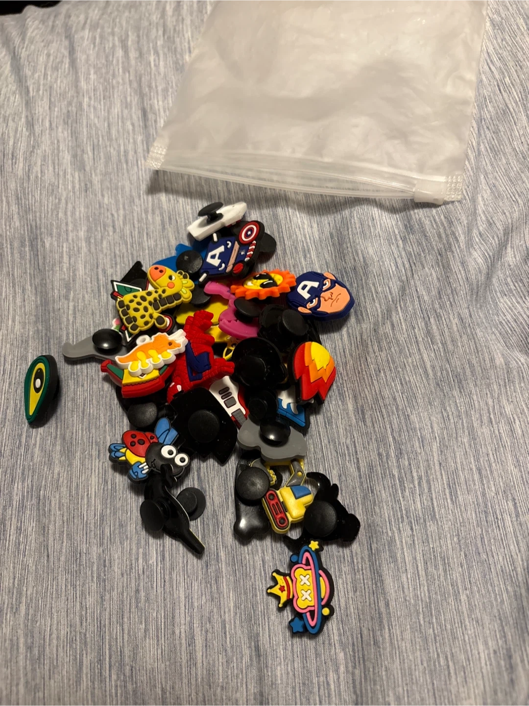 I have a collection of fun Croc Jibbitz charms up for grabs! There's a variety of different designs, so you can customize your Crocs to your heart's content