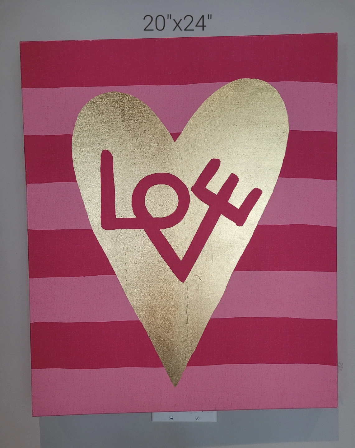 I'm selling a collection of decorative wall art. The sizes vary, including 12"x36", 24"x24", and 20"x24". These pieces would be perfect for adding a touch of pink to any little girls room!