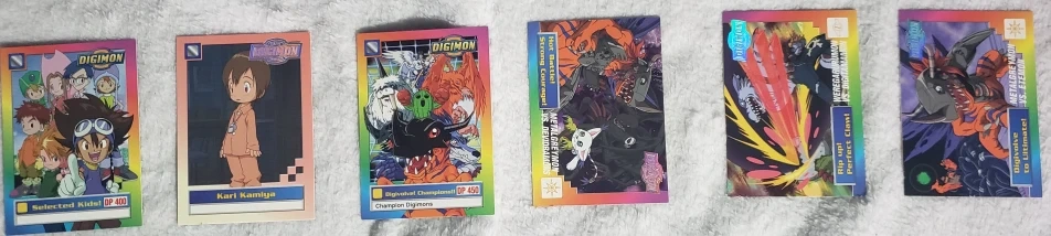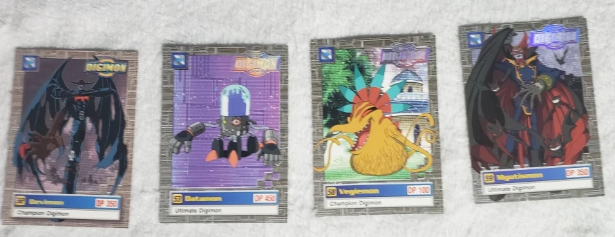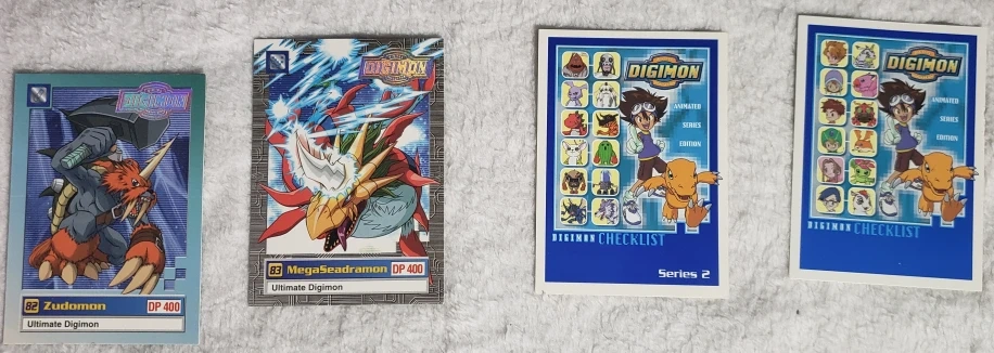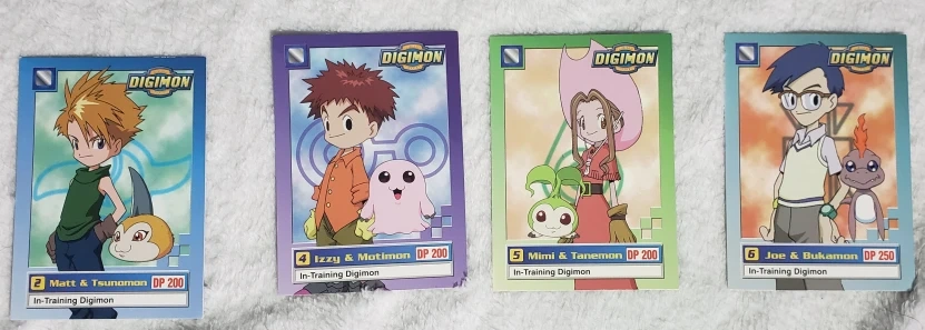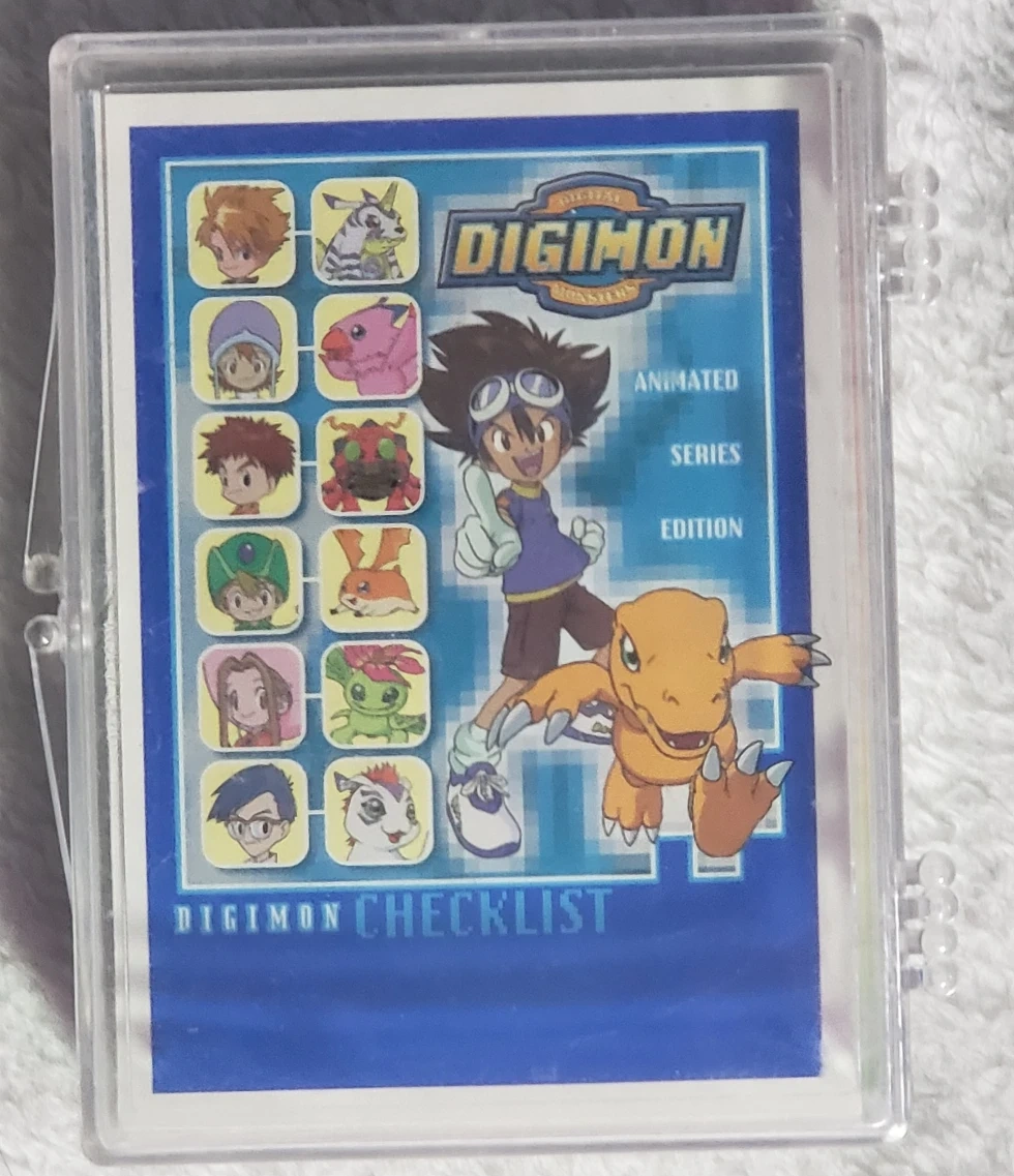 Complete your trading card set with these 31 assorted Digimon Digital Monsters: The Animated Series Trading Cards. Some are from Series 1 and some are from Series 2. Comes with 2 Digimon Checklist cards and plastic case. Cards produced by Upper Deck in the years 1999 and 2000. Standard trading card size. Made of cardstock. All of the cards are in pristine condition - no bends, rips, tears, marks or damaged corners. For ages 6+. Full List of Cards Included: 2 - Matt & Tsunomon 4 - Izzy & Motimon 5 - Mimi & Tanemon 6 - Joe & Bukamon 12 - Palmon 13 - Gomamon 15 - Kuwagamon 18 - Garurumon 19 - Seadramon 21 - Birdramon 22 - Meramon 32 - Devimon 53 - Datamon 52 - Vegiemon 59 - Myotismon 66 - Flymon 67 - Gatomon 68 - Nanimon 70 - Dokugumon 71 - Mammothmon 74 - SkullMeramon 75 - Wizardmon 78 - Lillymon 82 - Zudomon 83 - MegaSeadramon - Selected Kids! (1 of 34) - Kari Kamiya (3 of 32) - Digivolve! Champions!! (3 of 34) - Hot Battle! Strong Courage! (29 of 32) - Rip Up! Perfect Claw! (26 of 32) - Digivolve to Ultimate! (25 of 32) Makes a perfect gift for the trading card lover in your family. Listing price is for the whole lot of cards. They will not be sold individually. We accept Interact e-Transfer and PayPal, as well as cash. NO SHIPPING and NO DELIVERY. Curbside pickup ONLY. If you are interested in purchasing this product or have any further inquiries, please send us a direct message.