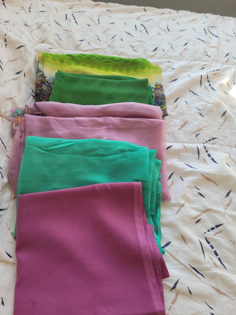 I have a collection of fabric pieces in various colours and textures! Perfect for sewing projects, crafts, or any creative endeavour you have in mind. There's a mix of solid colours and some with subtle patterns. They're all in great condition and ready for a new home!