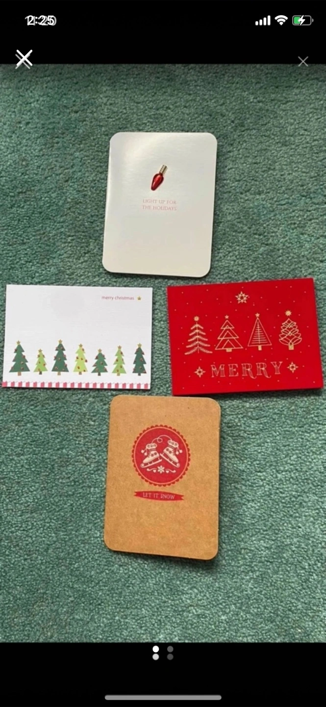 20 cards total and envelopes included. Brown card (x7) Red card (x1) Light bulb card (x6) Christmas tree card (x6)