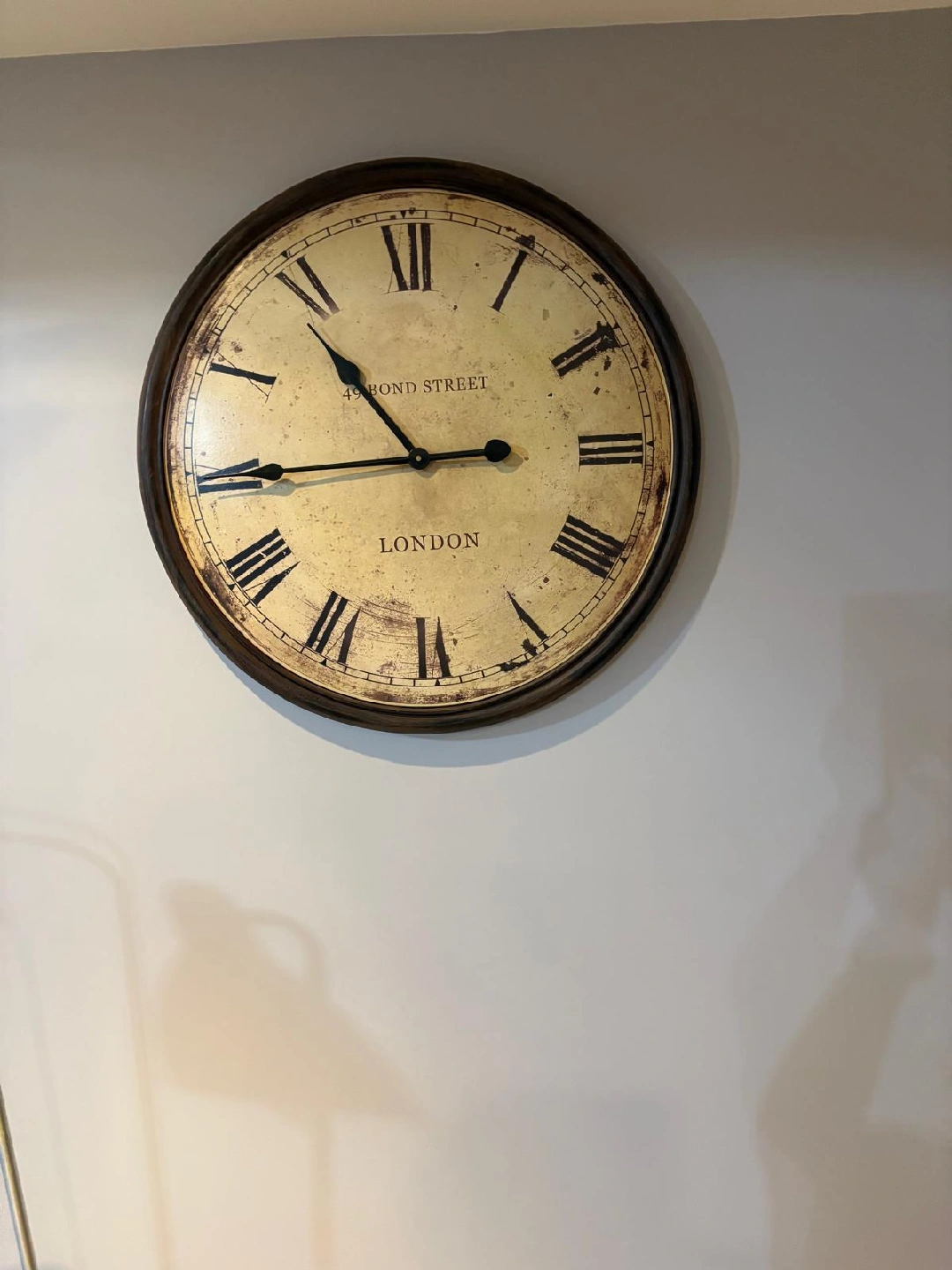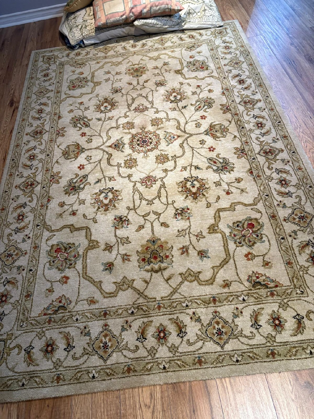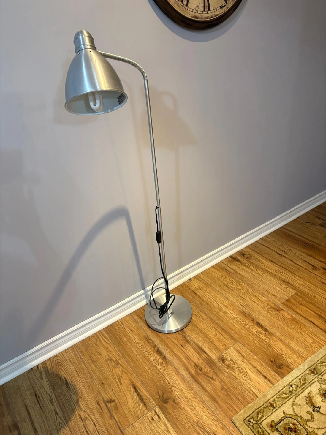 A collection of home decor items looking for a new home! Included are two rugs with different patterns, a silver floor lamp, and a decorative wall clock. Perfect for adding a touch of style to any room All 4 things for $25