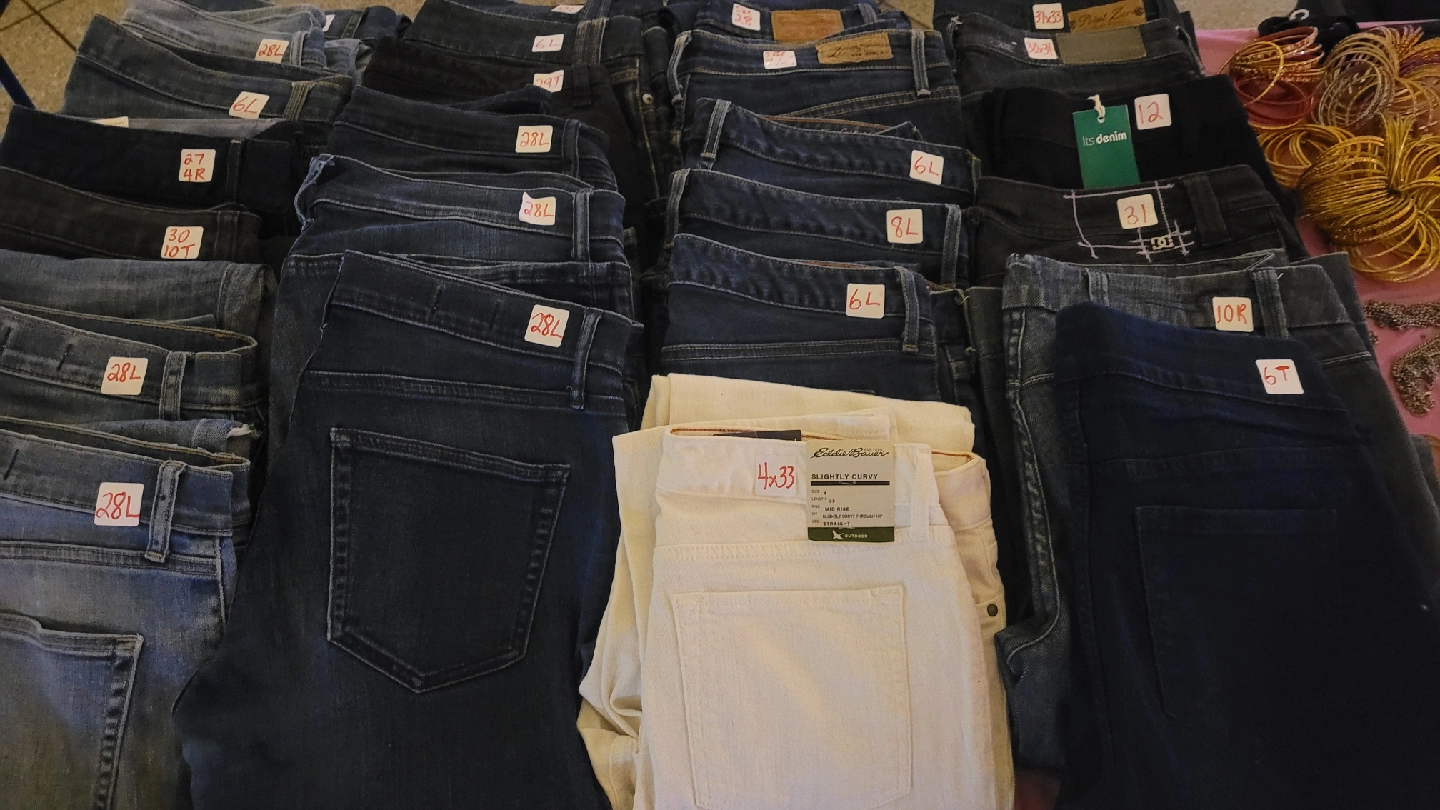 Selling a variety of new and pre-owned jeans from brands like Eddie Bauer, Gap, Old Navy, Levi's. Mostly "tall" or longer inseam. Sizes vary, so please take a look at the photos for sizing details. There are jeans marked with sizes like 28L, 6L, 27, 4R, 30 10T, 4x33, 12, 31, 10R, and 6T. Dark wash, light wash, black, white. Open to offers. Best Price if you take all!