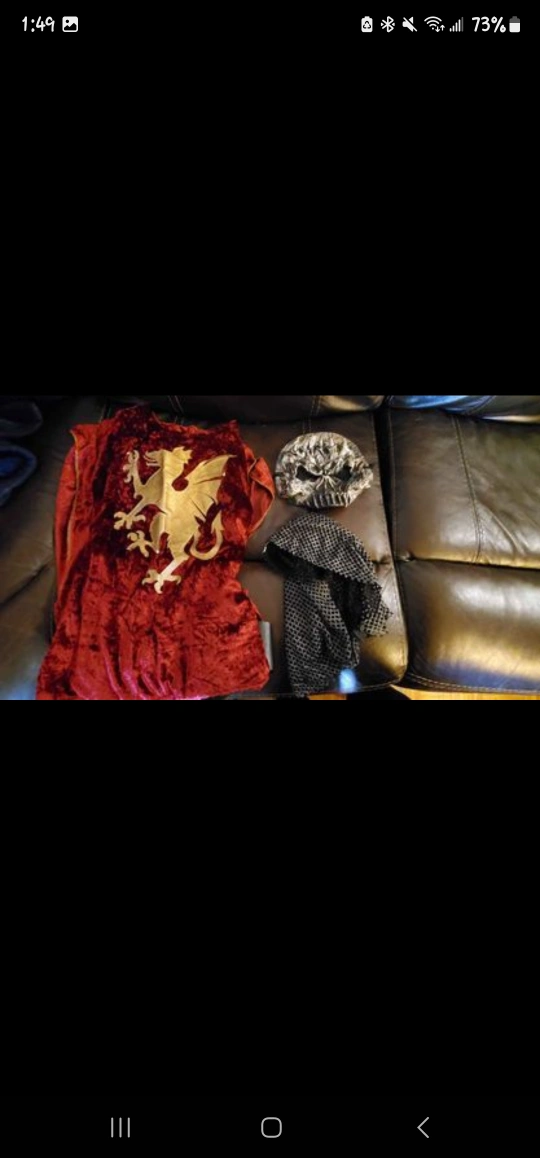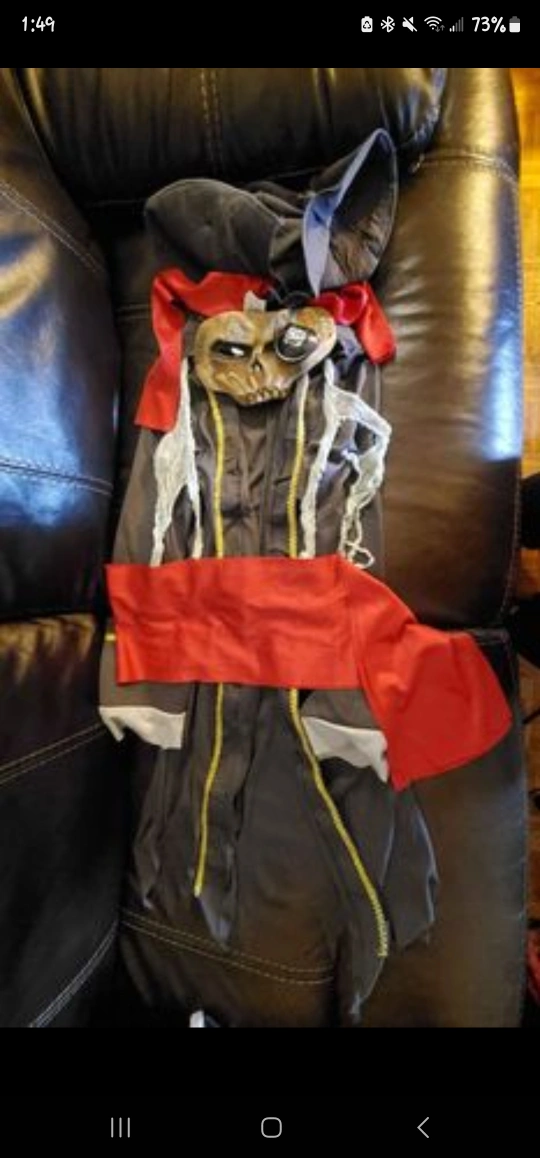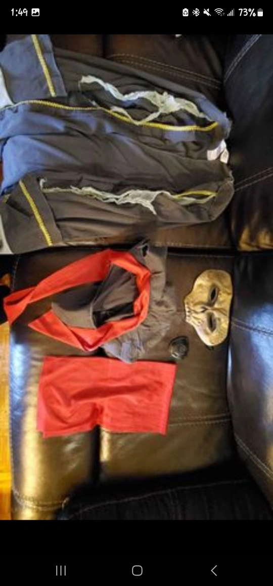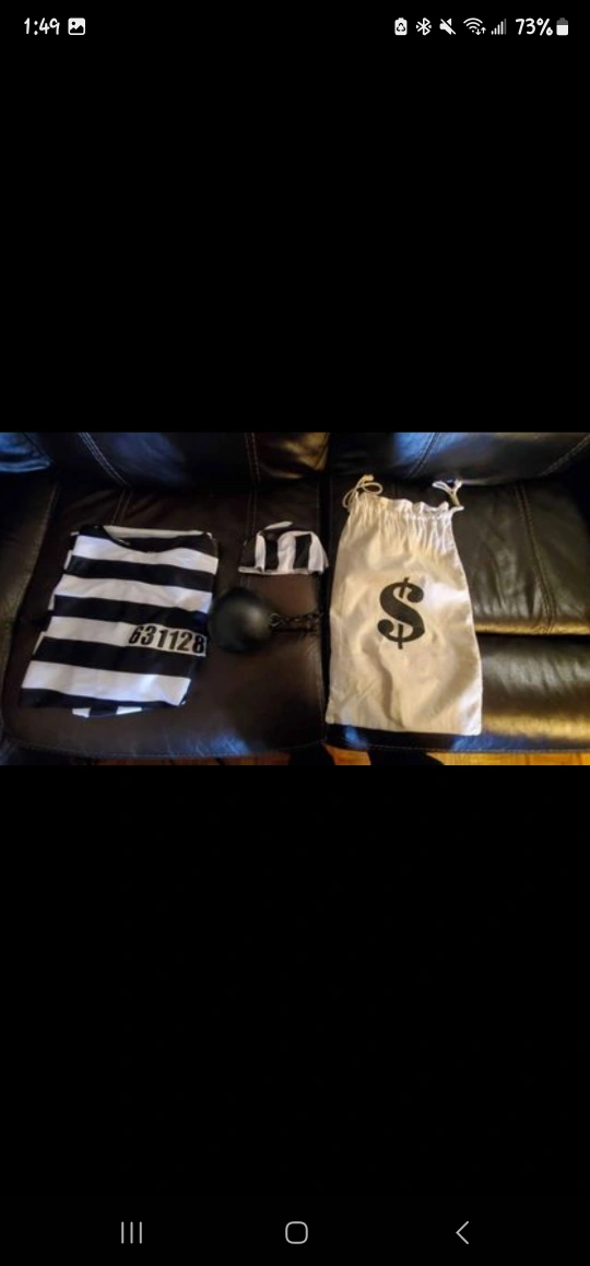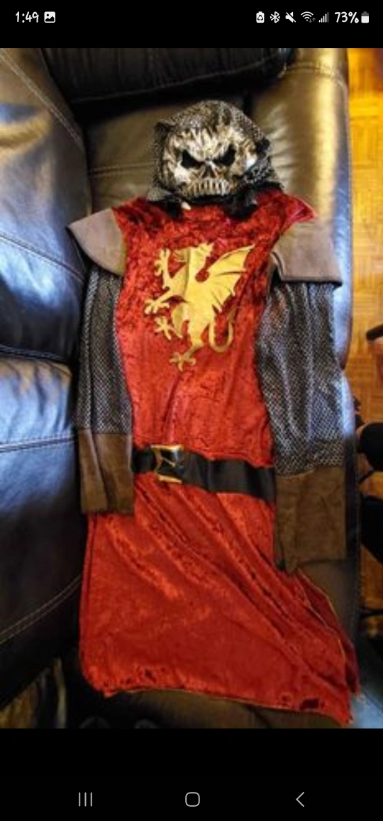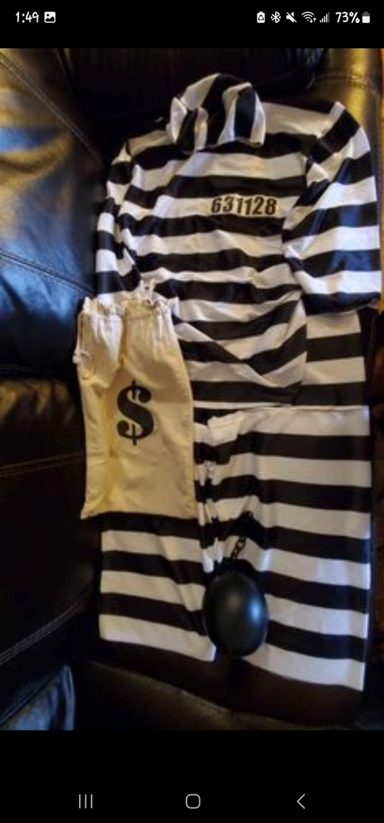 Selling a variety of kid's costumes. Includes a pirate costume, a prisoner costume with a money bag, and a knight costume. Great for dress-up or Halloween! • Like new or good condition • $20 for each costume set and $5 for each cape • Pick up only, no delivery • Price is firm
