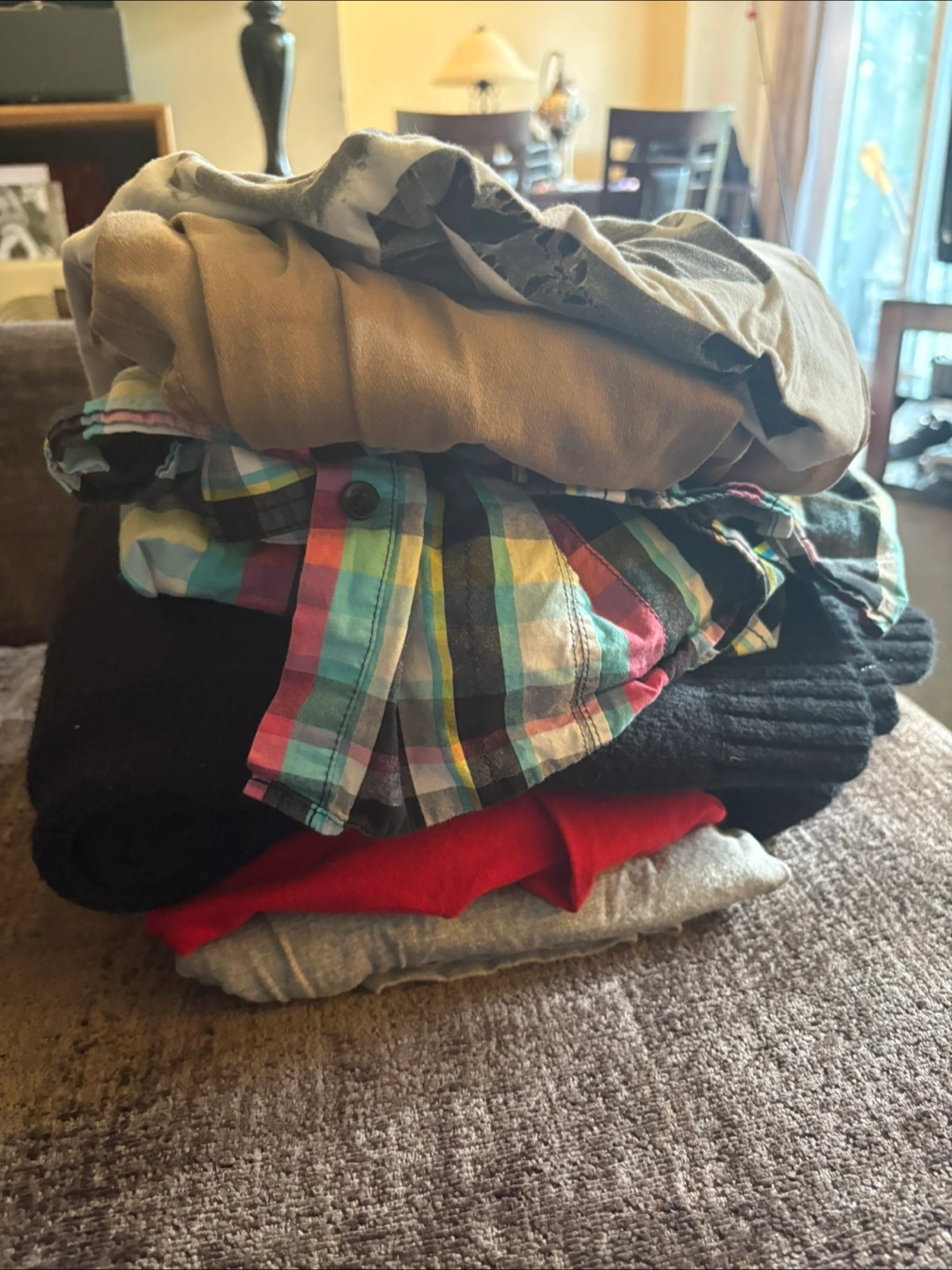 Selling a variety of men's shirts and pants, including brands like Zoo York and others. All in good condition. Selling all for $15 or can buy seperate for $3 each item