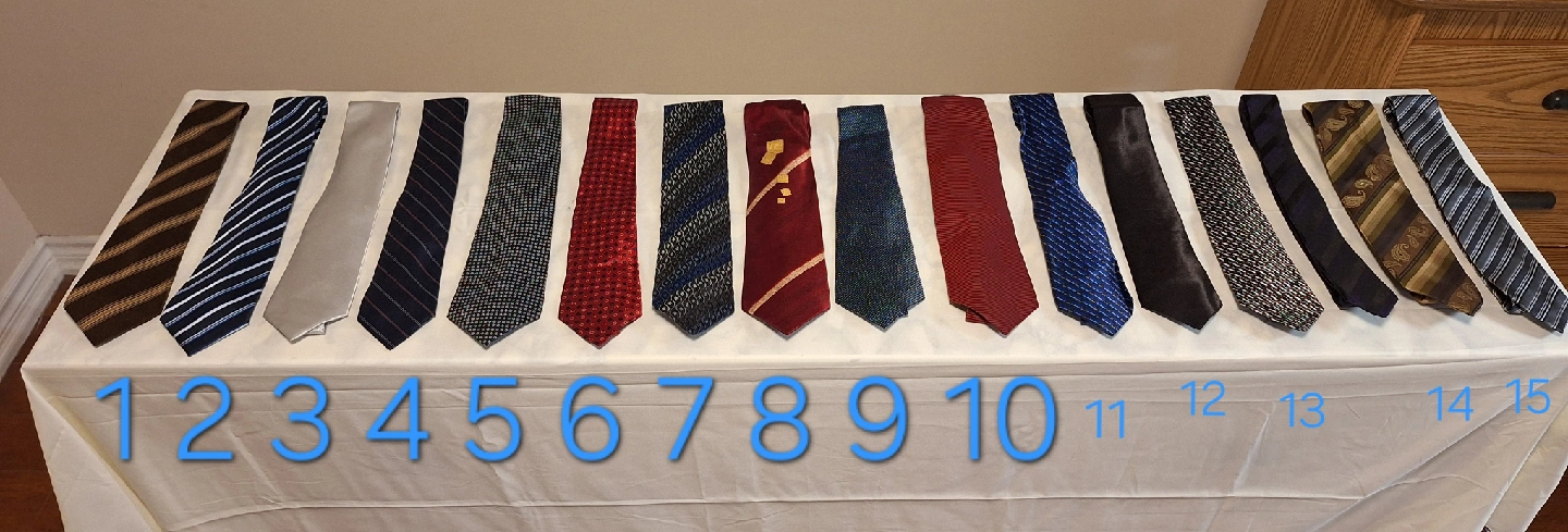 Selling a collection of men's ties in various patterns and colours $4 each sfpf home Major intersection queen street and bramalea road, brampton selling as I am relocating Check my other listings too !!!