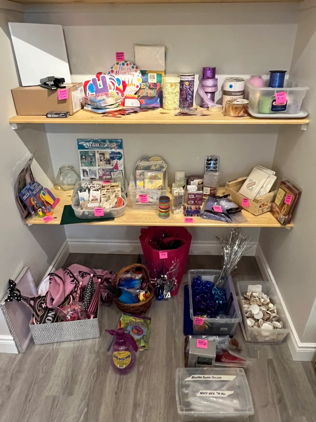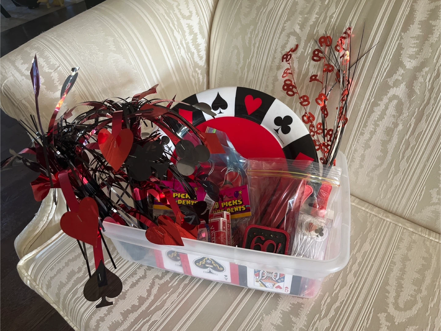 Selling a variety of craft supplies, including Paris theme package in pink with cloth table runner, parasols, paper lanterns and more, casino theme pack with hears and spade sprays, new playing cards, picks, 60 candle, cutlery and more, reusable chalkboards and pens, birthday and wedding decorations, assorted plastic cutlery (never used), glue gun and glue sticks, hole punches with different shapes, and other items perfect for your next project. Prices $2 - $20 or best offer