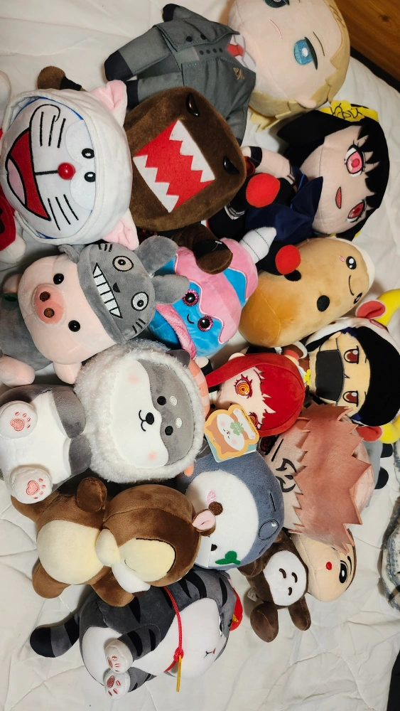 Im letting go of my plushies because I got too many. A collection of various plushies, including characters like Doraemon, Domo, and Spy Family If you buy more than 1 ill give you a deal.