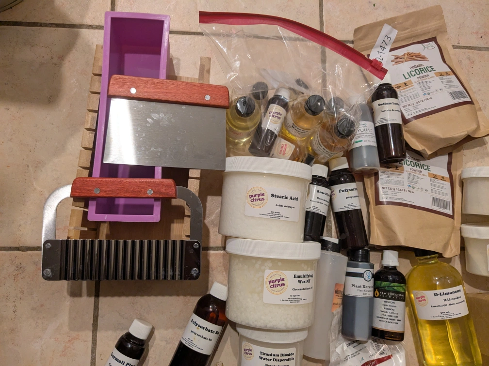 new lye, fragrances, powder ex. 2022, plant keratin, Titanium dioxide, soap cutter, soap mold, vanilla stabilizer, etc. pickup hillside Avenue and Wheatfield Rd m8v1s6 Etobicoke