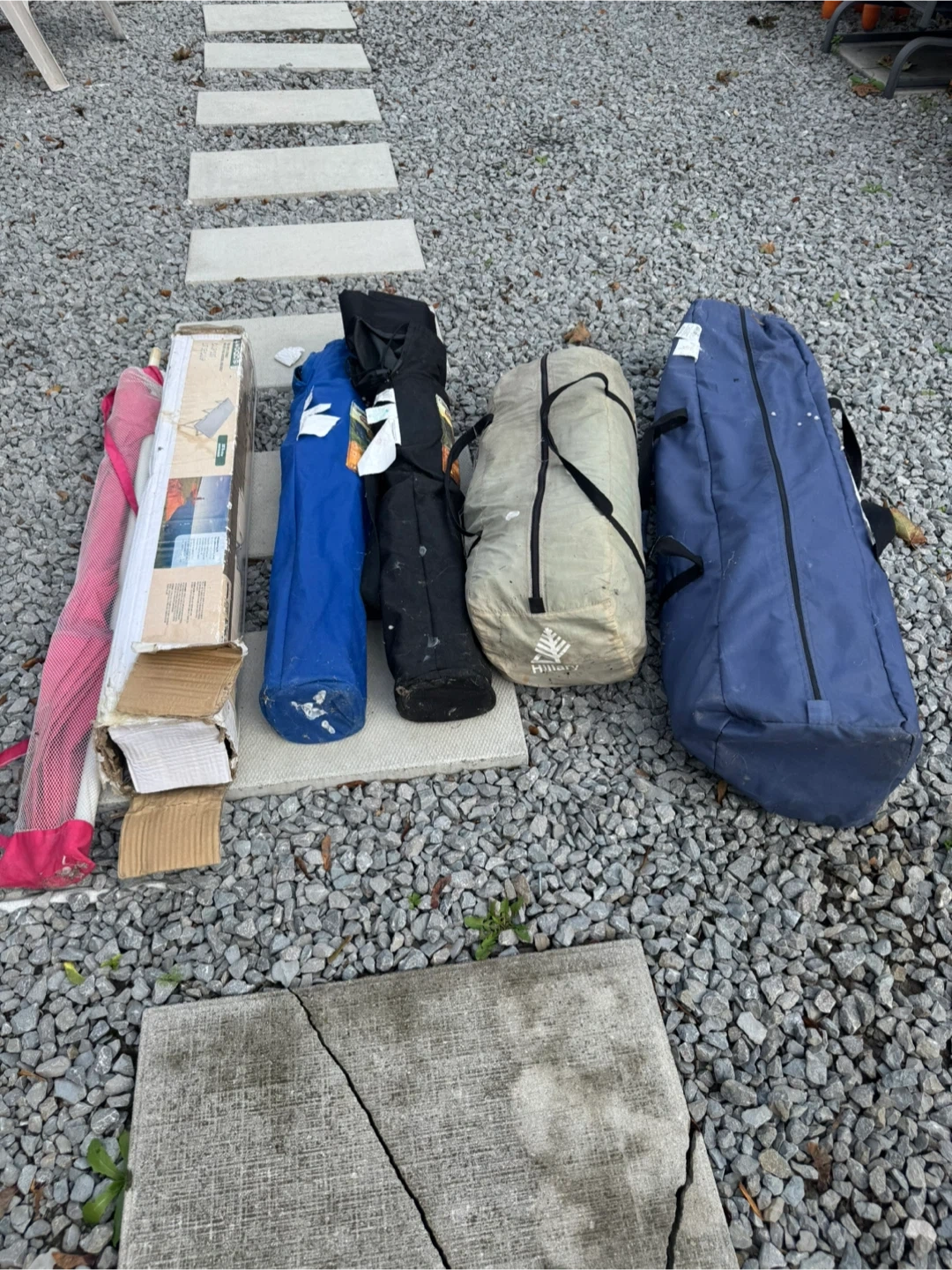 Selling a collection of tent and beach umbrella bags. Includes a Hillary brand bag. Great for camping or beach days!