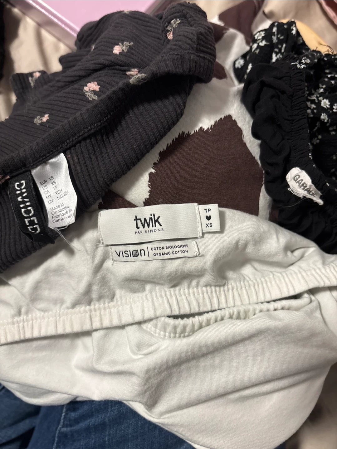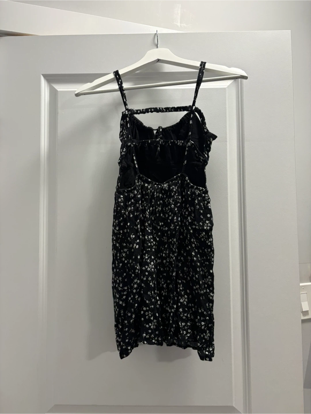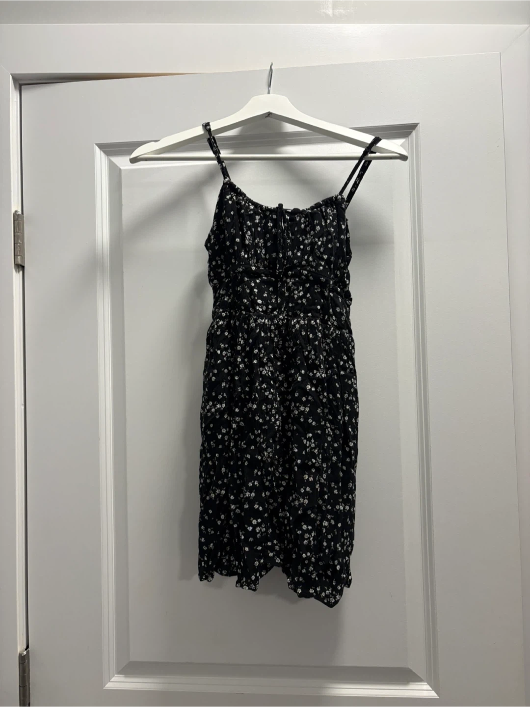 Selling a collection of assorted women's dresses. Please see photos for details! garage black with flowers xs h&m black with snaps s simons brown & white xs $20 each or $50 if you take all 3 worn only a couple of times each. in great shape.