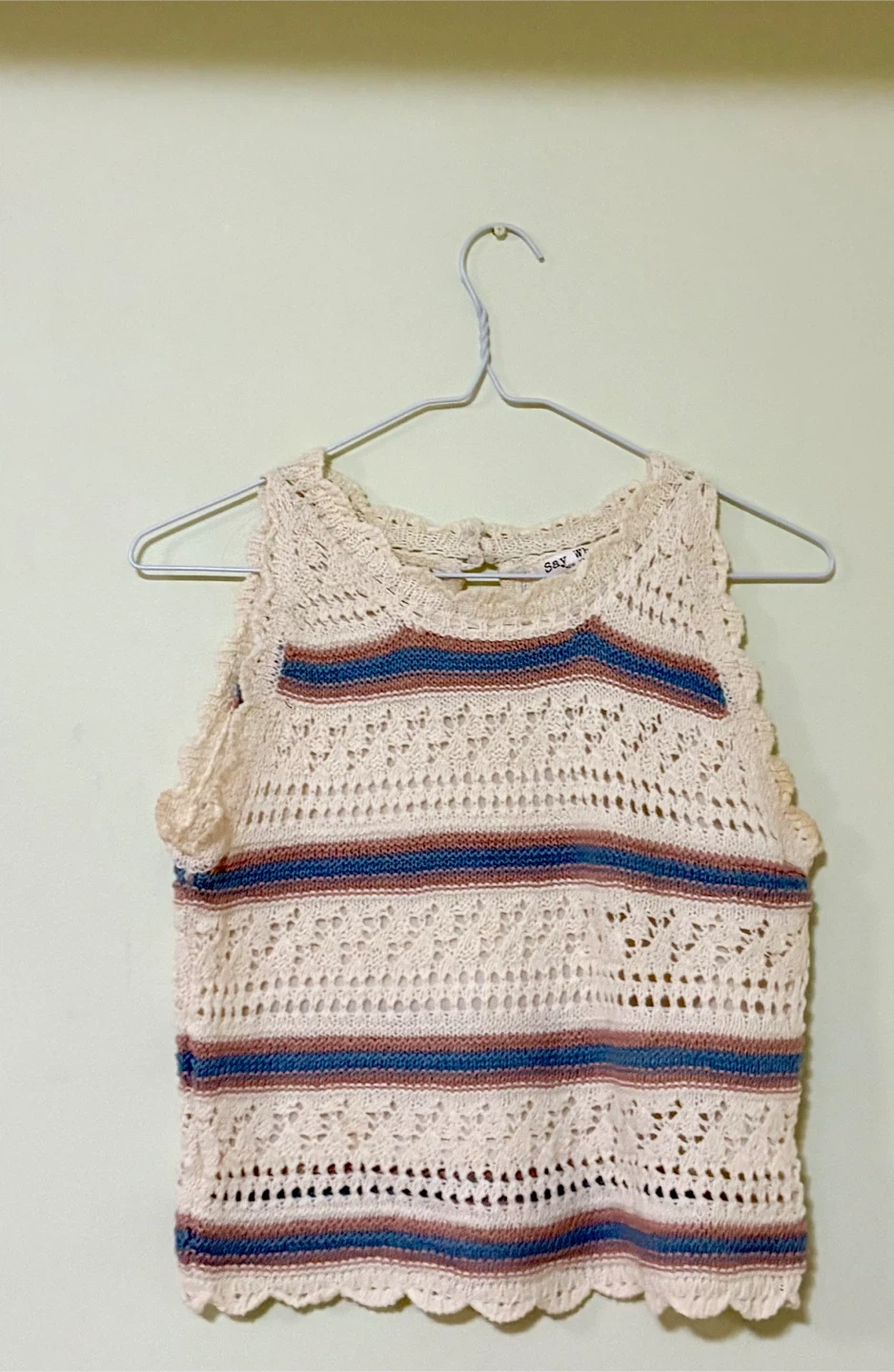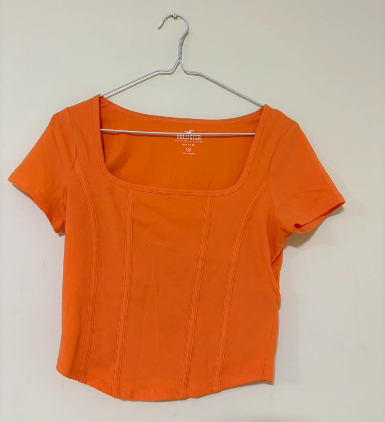 Selling a collection of women's tops and sweaters! Includes a red hoodie, a cream crochet tank top, a blue long-sleeve crop top, a black and white sweater, and an orange Hollister t-shirt. All in great condition and ready for a new home.
