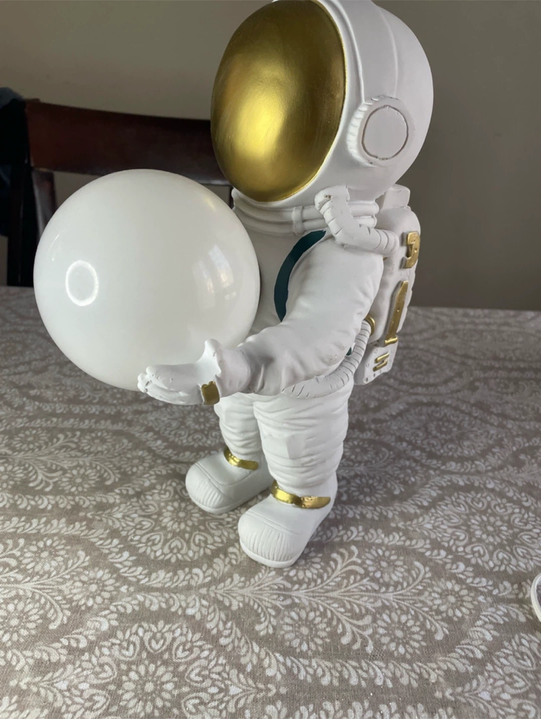 Selling this adorable astronaut table lamp! It's in great condition and would look perfect in a kid's room or any space-themed decor. The astronaut is holding a glowing orb, providing a soft and warm light