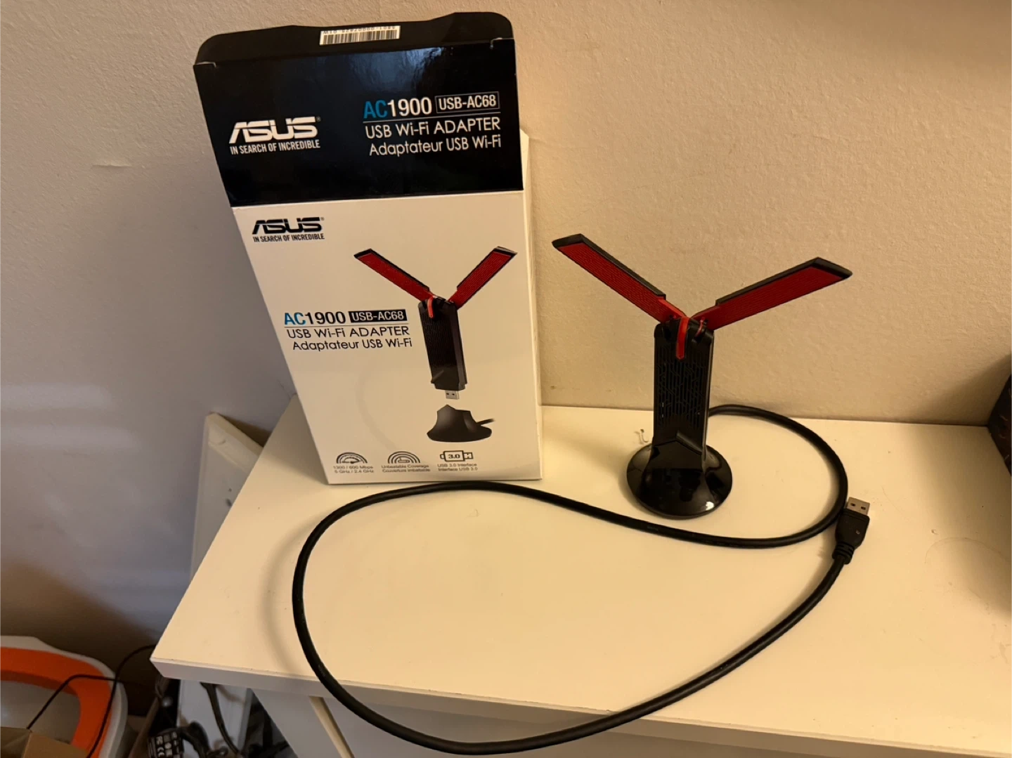 Selling an ASUS AC1900 USB-AC68 Wi-Fi Adapter! It's in great shape and comes with the original box. Perfect for boosting your Wi-Fi speeds on your computer or laptop.