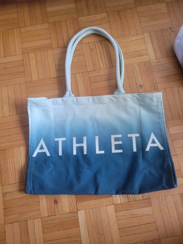Selling a cute Athleta tote bag with an ombre design! It's perfect for carrying your essentials to the gym, the beach, or just around town. The bag is in great condition and ready for a new home