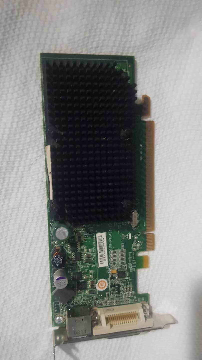 Vintage ATI graphics card model ATI-102-A924(B). Estimated to be from the Radeon X1300 or X1600 family, manufactured around 2006. A collectible or replacement GPU for retro builds and legacy systems. Specifications (estimated): GPU Series: ATI Radeon X1000 series Interface: PCIe x16 Output: Varies (DVI, VGA, S-Video depending on model) DirectX Support: DirectX 9 Condition: tested / Used – sold as-is Perfect for legacy systems, retro gaming rigs, or collectors looking to restore 2000s-era PCs. P.S: I have another one too, and another GPU that has same performance, but looks a bit different. Have 3, so if you want all I can give for $15.