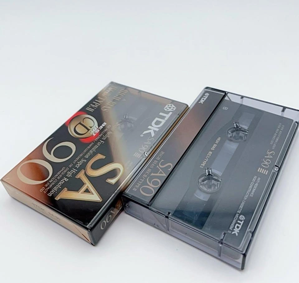 Two TDK SA90 audio cassette tapes in clear plastic cases, featuring vintage-style labeling and high bias for superior sound quality. Great for music recording or playback enthusiasts.