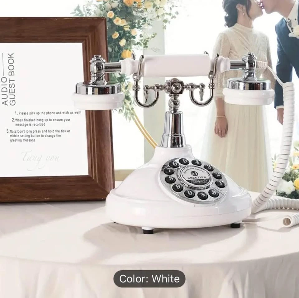 Capture Memories with an Audio Guestbook! $100 FOR 1 FULL DAY RENTAL $250 FOR 3 FULL DAYS RENTAL + Refundable Security Deposit Rent out our charming vintage-style telephone guestbook including 1pc glowing signage for your next event and let your guests leave personalized messages. The recordings are a timeless keepsake for weddings, parties, or any special occasion. Setup your personal greeting message that your guests will hear right as they pick up the phone. How it works: 1. Plug in the device to an outlet and setup signage 2. Guests pick up the phone and leave their message 3. Hang up the phone to ensure it’s recorded 4. Relax and enjoy your event. Receive all the recordings within 24 hours after the rental. I will compile all the recordings into 1 file and send it over to you. Book now and let your guests’ voices become cherished memories!