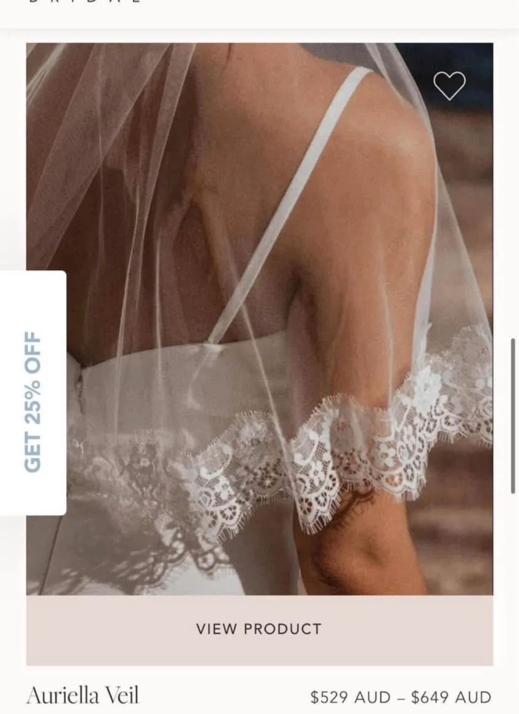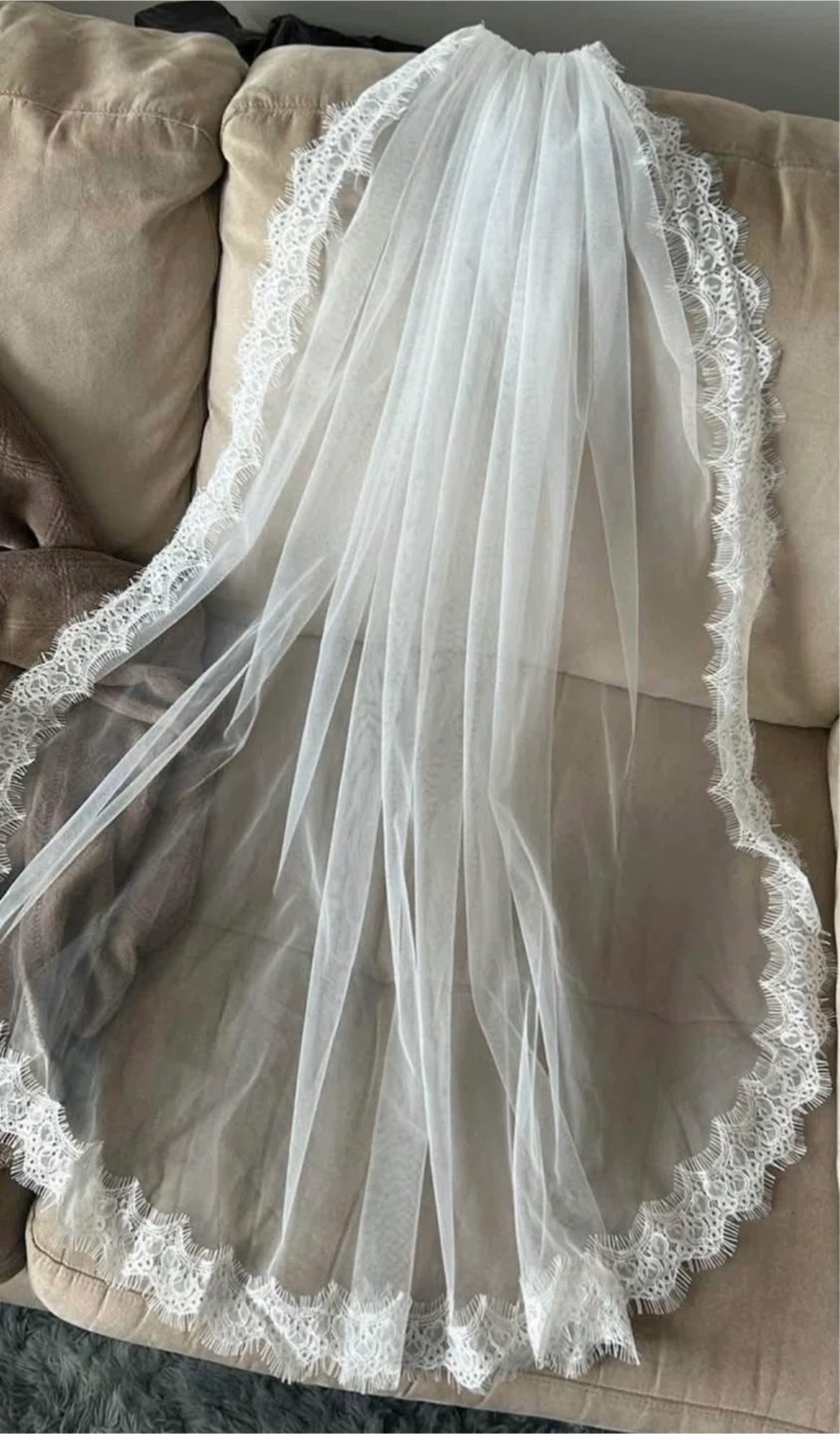 Selling an Auriella Veil. It has a beautiful lace trim and is in great condition New/flawless Retail $529 Soft white comb sewn in Lux quality Pick up one minute from King George skytrain station please respect pricing God bless! 🙂