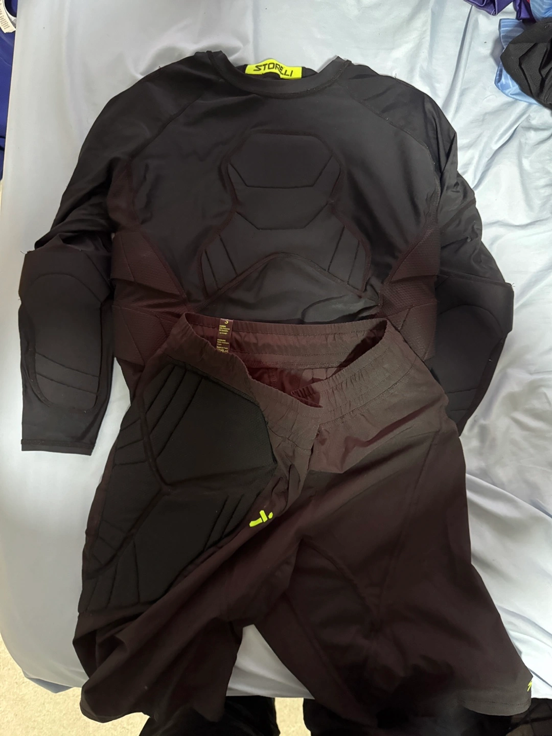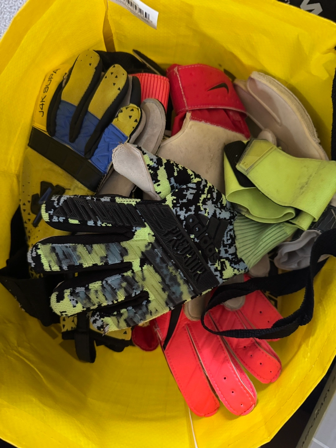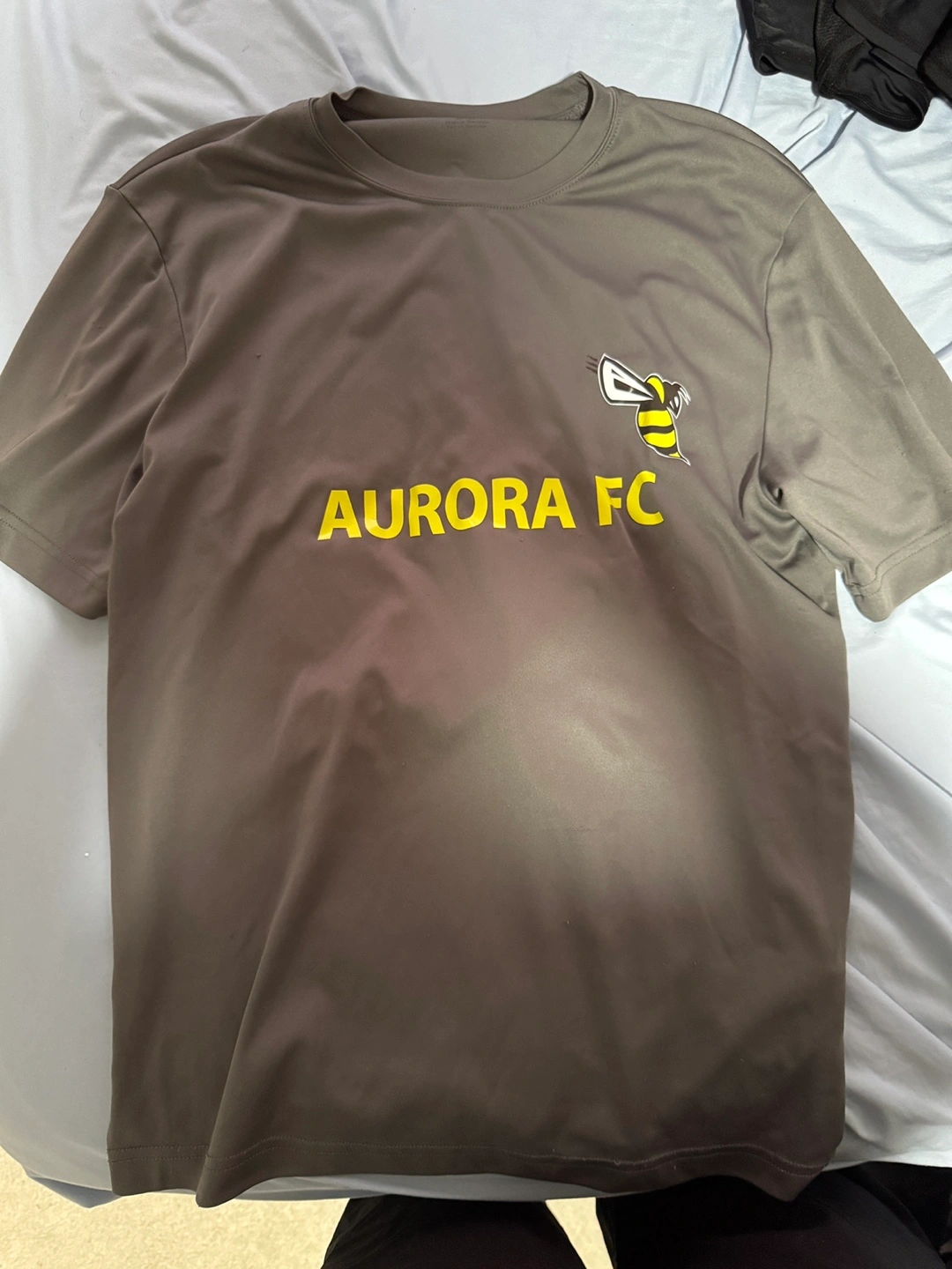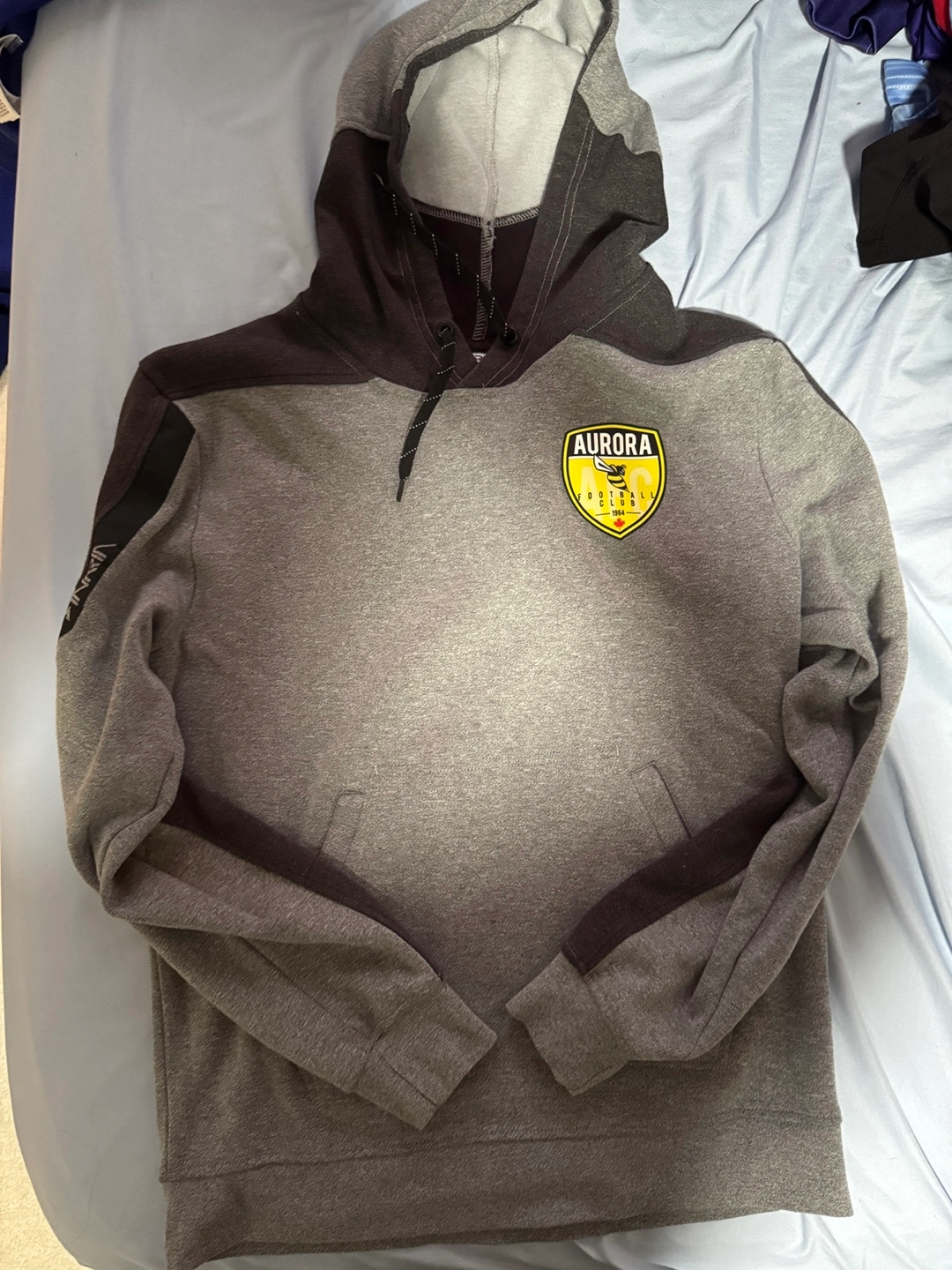 Assortment of Aurora Football Club apparel. Includes hoodie, short sleeve shirts, long sleeve goalkeeper jersey, and goalkeeper gloves. Various sizes and colours. Brands include Inaria and Adidas. 100 FOR EVERTHING This is well over 300+ dollars worth of stuff