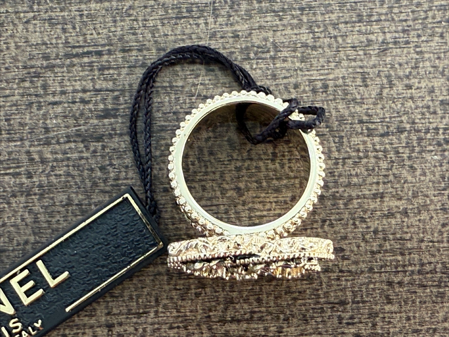 Authentic Chanel Crystal CC Ring – Size 5 – Brand New Rare 2014 Chanel statement ring, gold-tone with crystal CC logo. New with tag & box. 100% authentic.