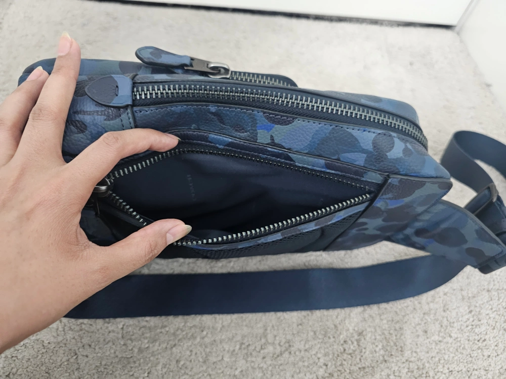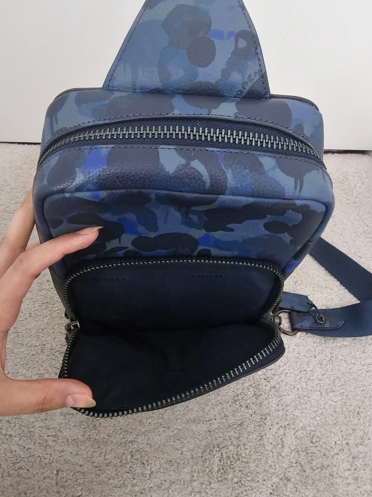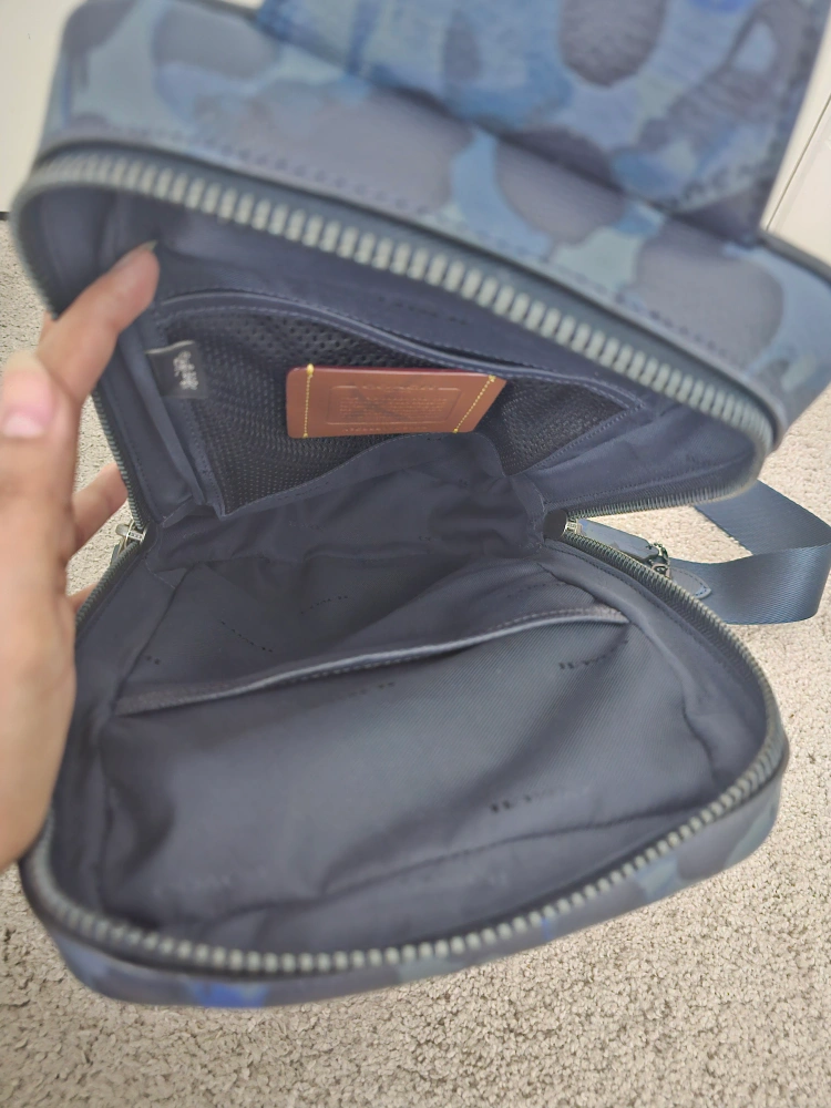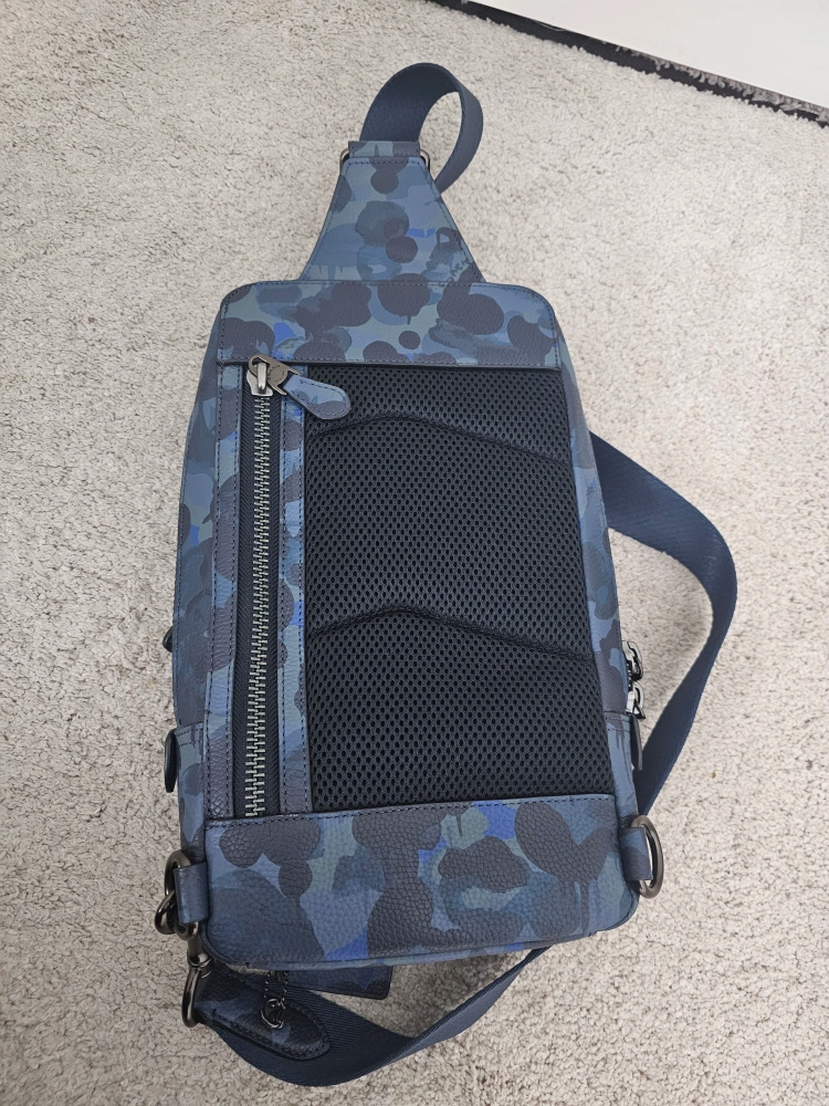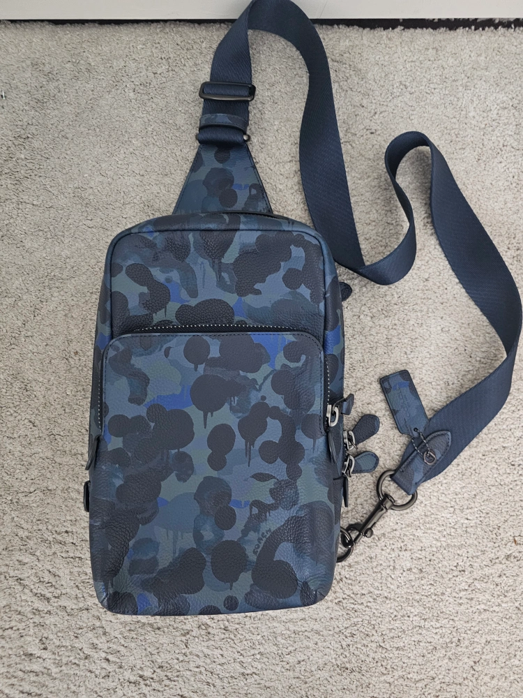 Selling a Coach sling bag with a cool camo print! It's in great shape and perfect for carrying your essentials around town. The bag has multiple compartments to keep everything organized. Let me know if you're interested! Can be used for both men and women.