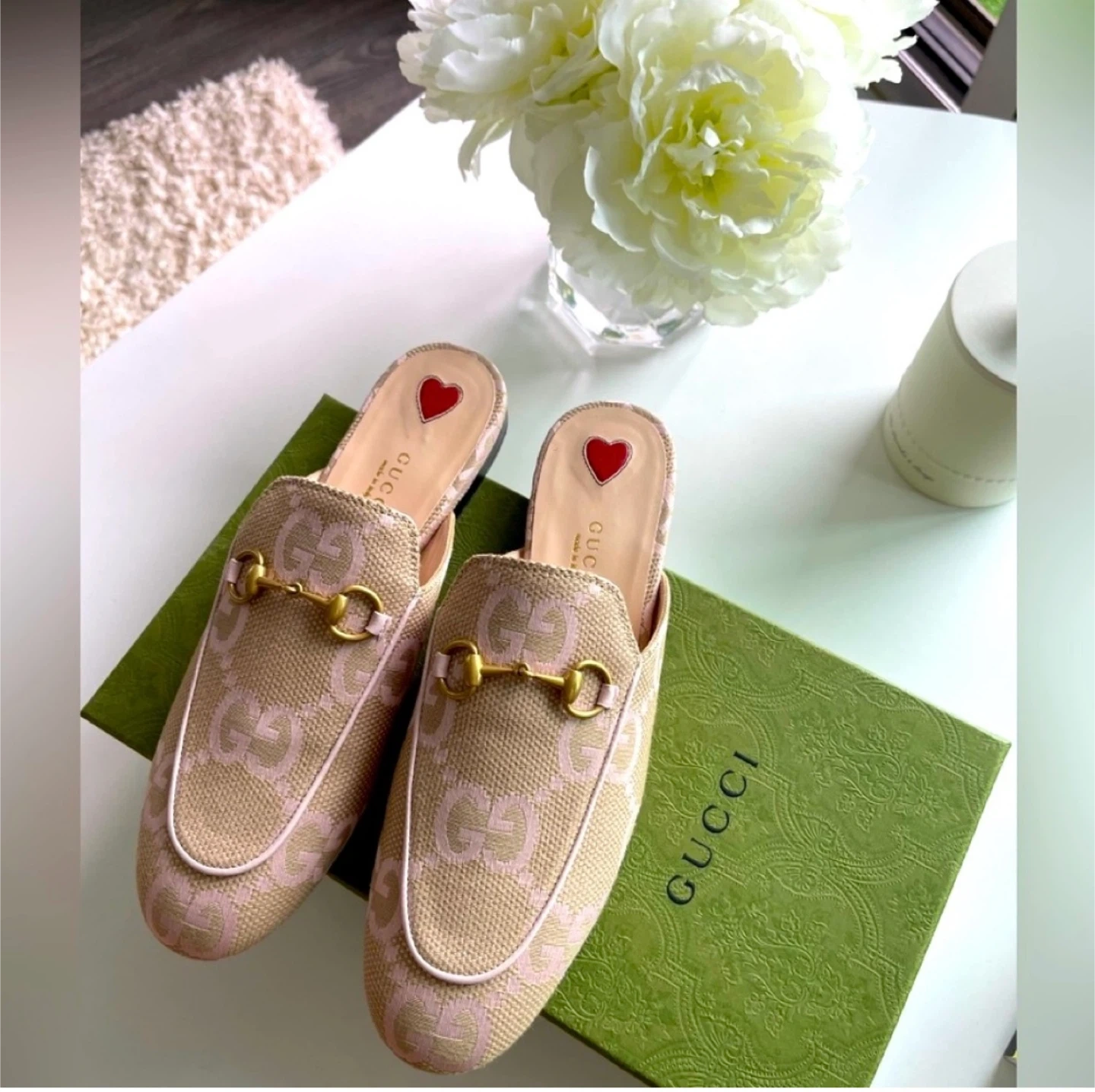 Authentic Gucci Jordaan GG Espadrille Mules Size 37