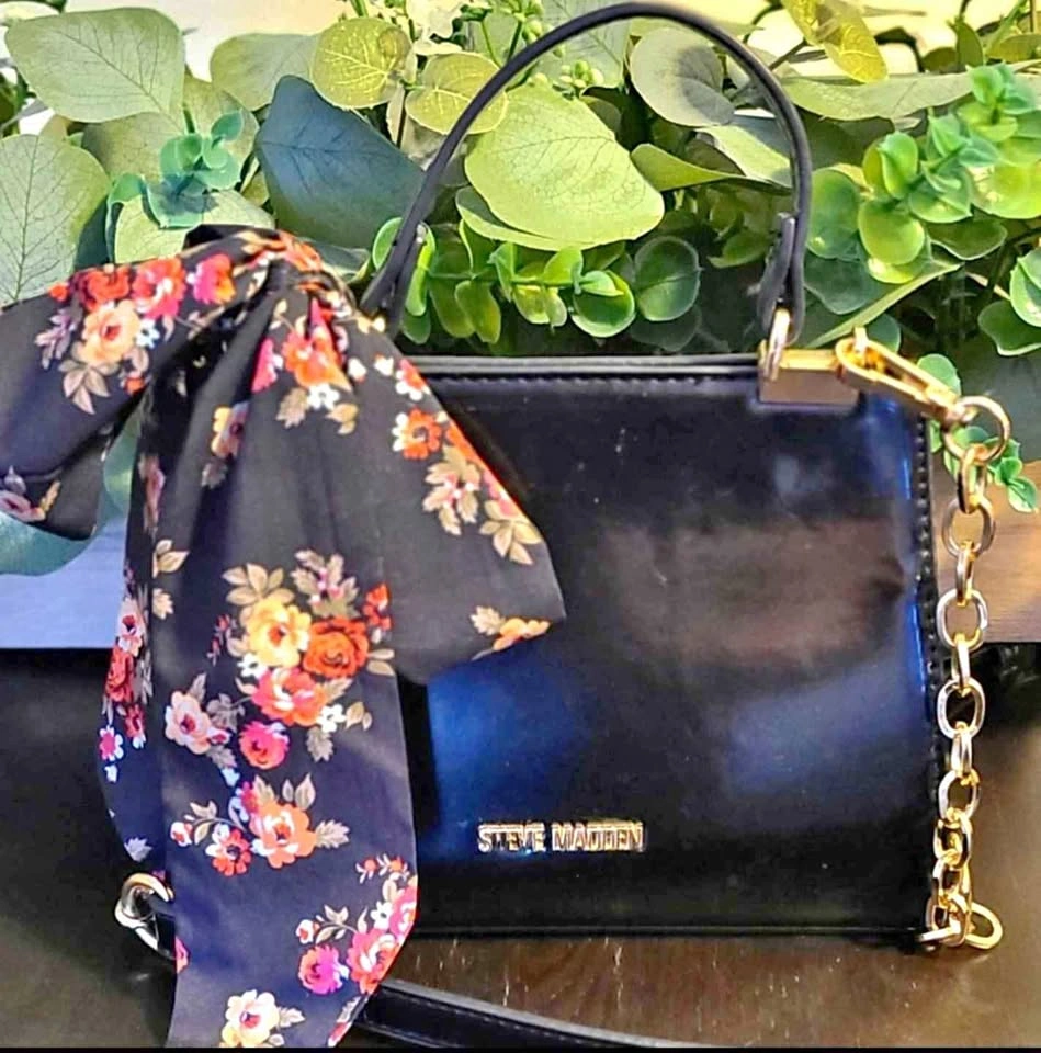 Cute bag but too small for me for every day. Scarf included. 1 inside slip pocket and 1 zip. Patent leather.