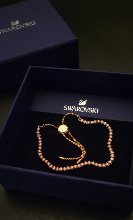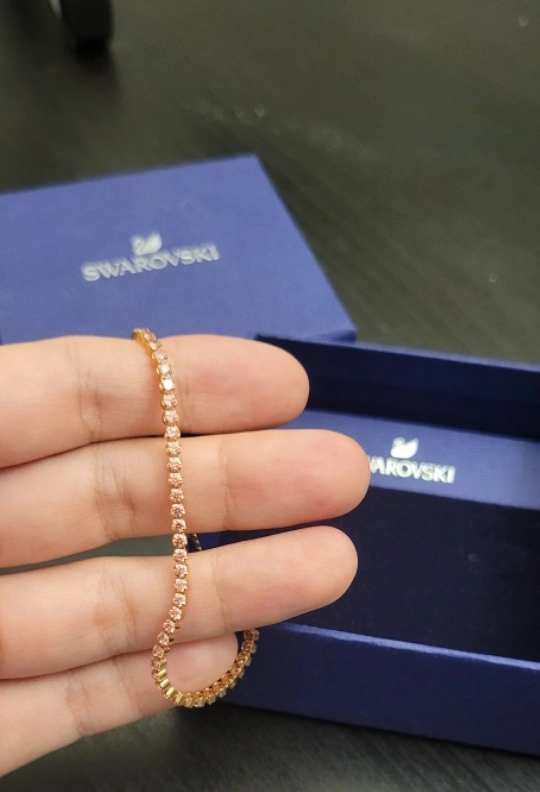 crazy about jewelry... I dont know why bought it at the first place...literally never wore it. come with box Selling a beautiful Swarovski tennis bracelet in rose gold. It's in excellent condition and comes with the original box. Perfect for adding a touch of sparkle to any outfit!