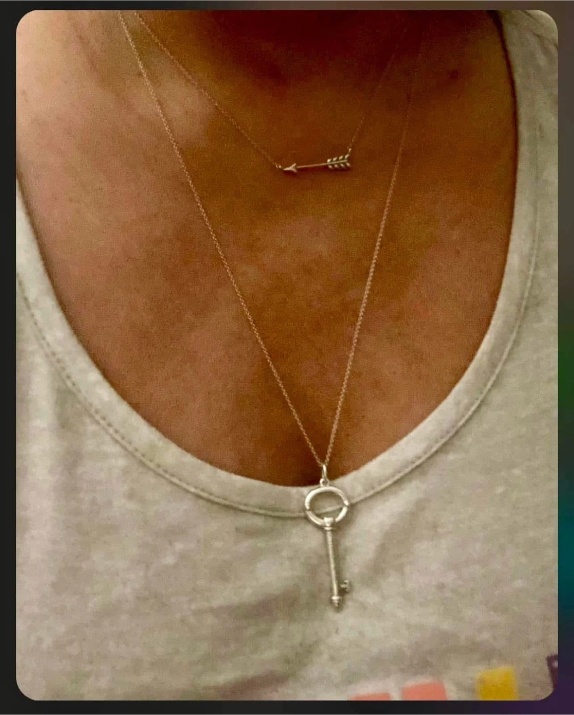 Sterling silver Modern Key A now *Retired piece*!! Made of sterling silver. Only worn 2-3x and still looks brand new to the naked eye! This key truly is the perfect size as well, it’s not too small nor not too big, and is perfect worn on its own or layered! NOTE: Only the key is being sold, no chain, or arrow necklace, they are just for display purposes. Comes with a brand new T pouch only and as well, and will be well protected IF shipping. Pick up is 401/Keele area ONLY.