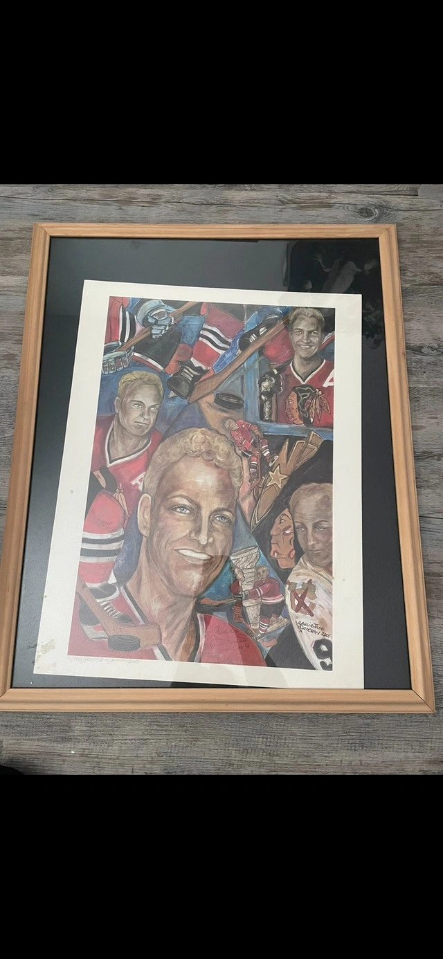 Own a piece of hockey history with this autographed Bobby Hull print, also known as "The Golden Jet." This framed print showcases a vibrant portrait of the legendary Chicago Blackhawks player, making it a must-have for any sports memorabilia collector. Note that this is a used item, with some wear and tear as shown in the pictures. * Framed and ready to hang * Features Bobby Hull, the "Golden Jet" * Perfect for hockey fans and collectors I've priced it competitively. If the ad is still up, it's still available!