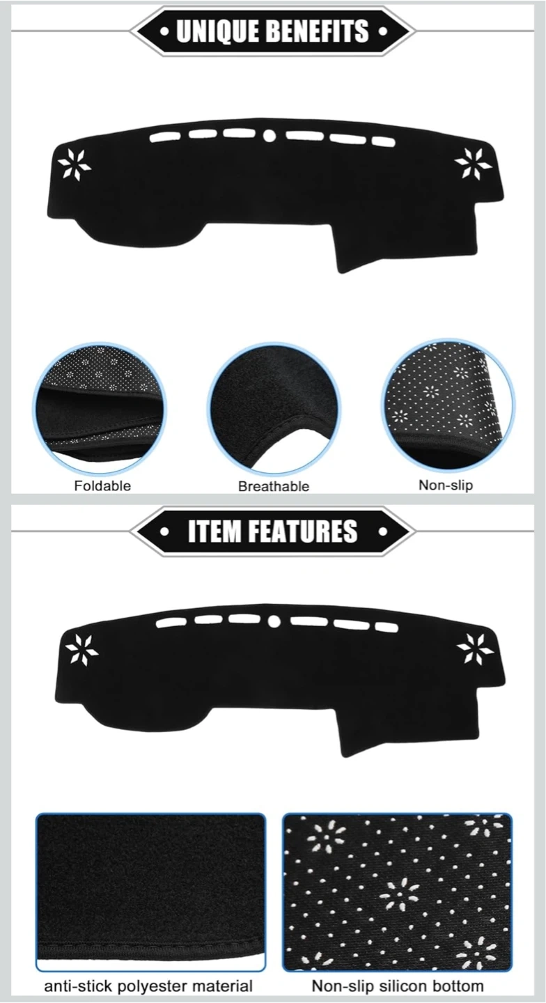 Keep your dash protected with this AUTOHAUX dashboard cover! It's compatible with Toyota 4Runners from 2015-2019. This non-slip polyester cover is black and helps protect your dashboard from wear and tear. It's breathable, foldable, and has a non-slip silicon bottom