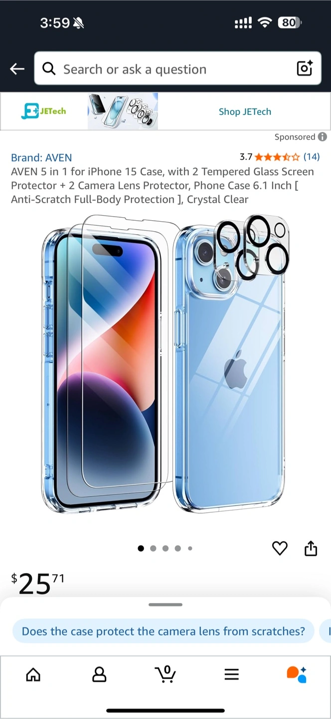 Selling a brand new AVEN 5 in 1 case for iPhone 15! This crystal clear case comes with 2 tempered glass screen protectors and 2 camera lens protectors, offering anti-scratch and full-body protection. Originally bought for $25.71