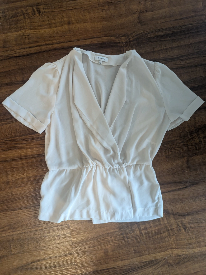 Selling a cream colored Aritzia (Babaton) blouse in size medium. It's a beautiful, lightweight top that's perfect for work or going out. Can also be worn open over a cami or tee.