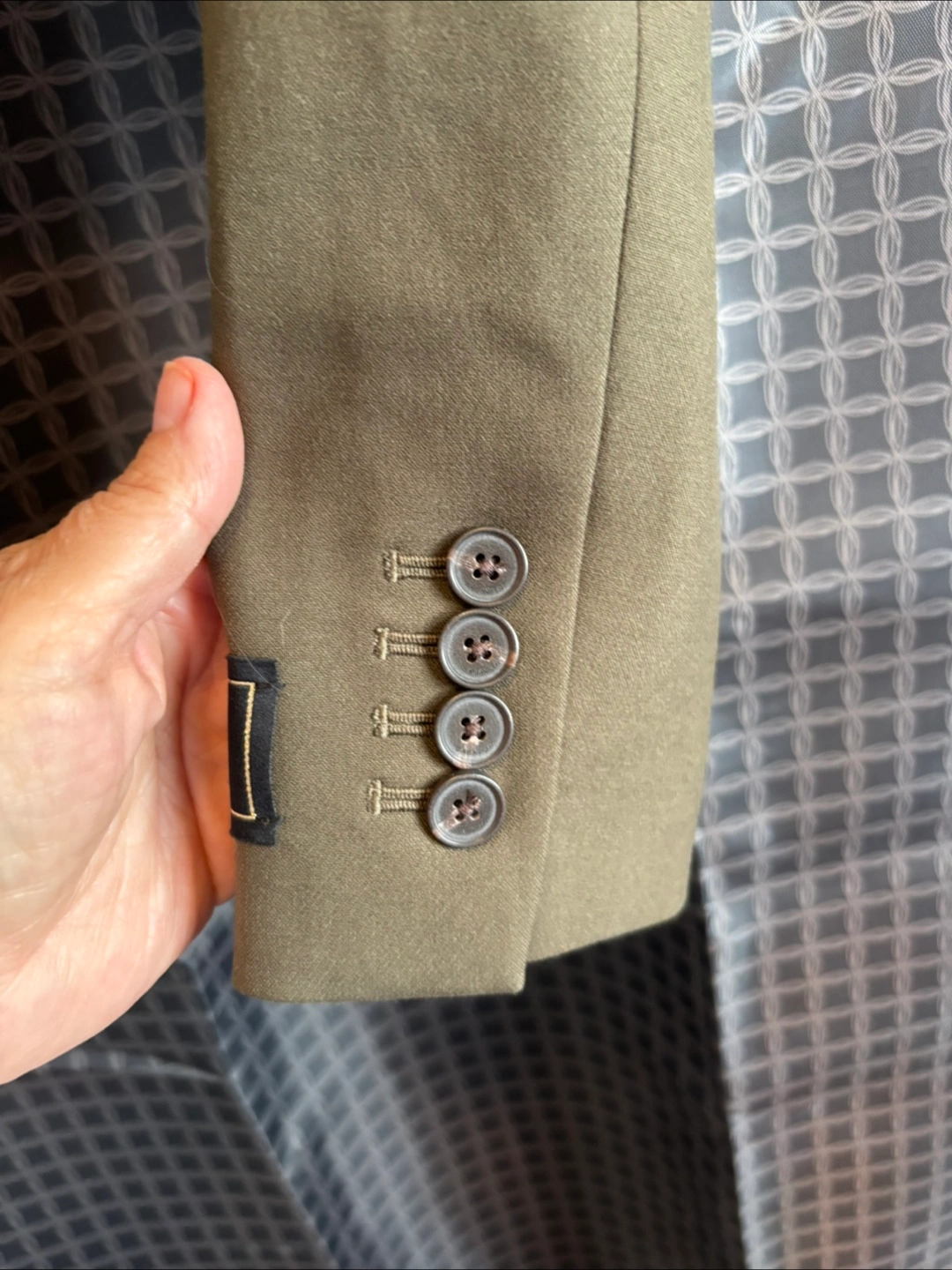 Women's cropped blazer. Olive green colour. Long sleeves, single button closure. Four button detailing on cuffs. Excellent condition. Size 0