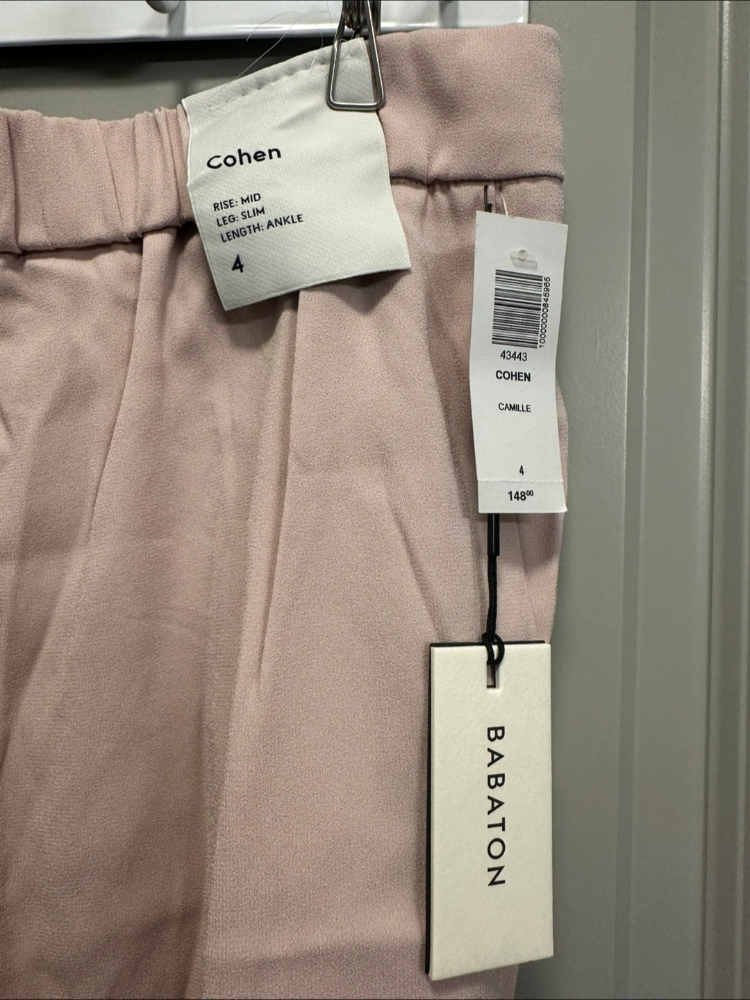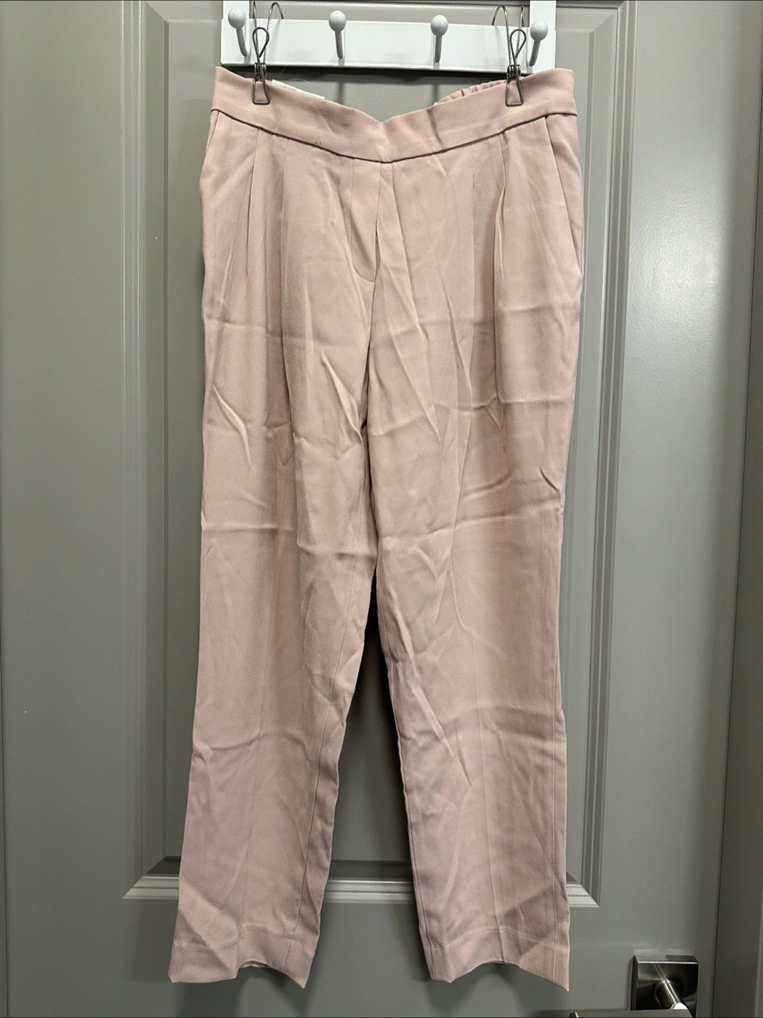 Brand new, never worn with tags still on. The pants are a light pink colour and are designed with a mid-rise, slim leg, and ankle length. Originally bought for $148.99. Cash only Can meet up in Burnaby or Richmond Can also make arrangements for other areas