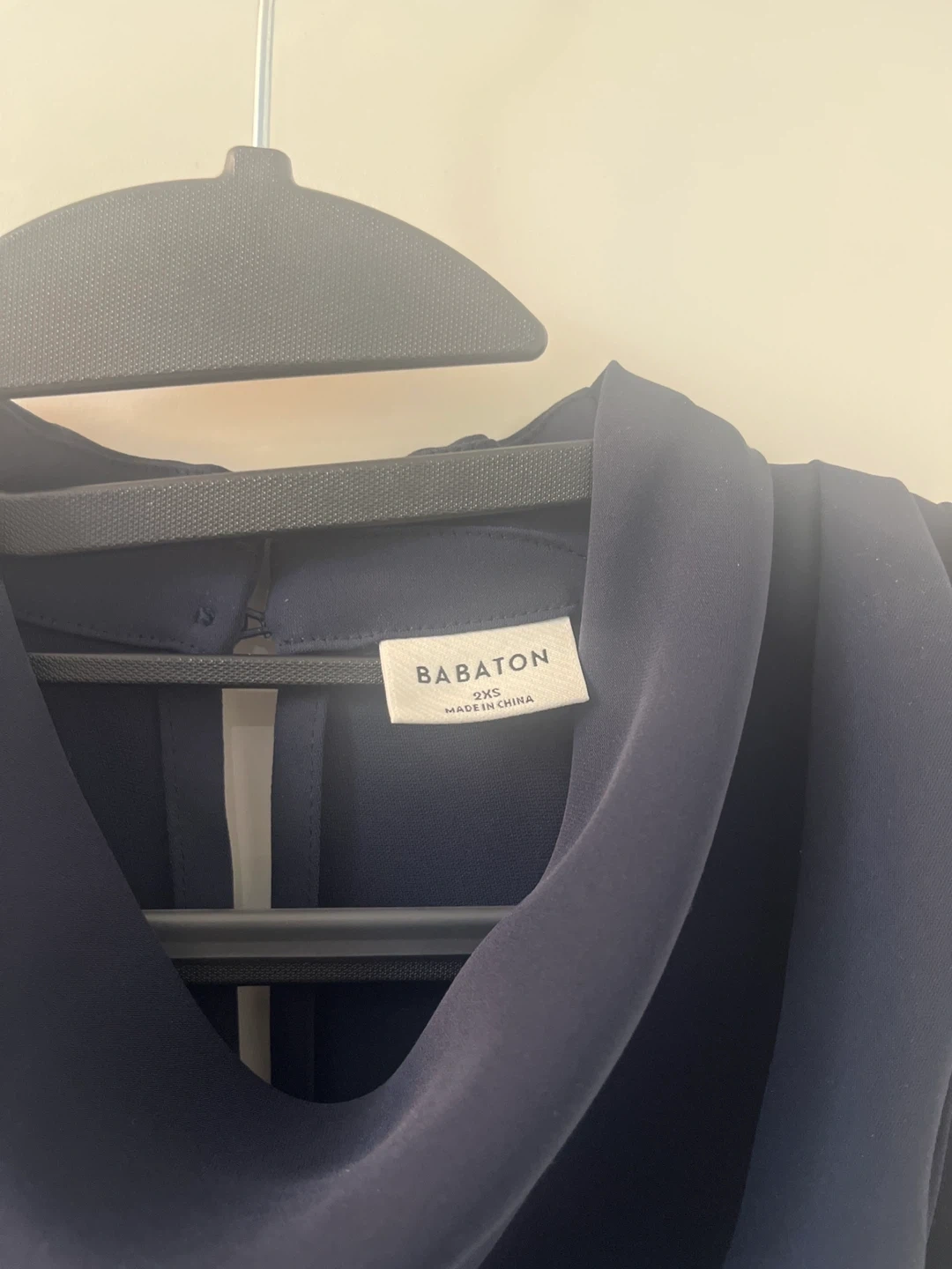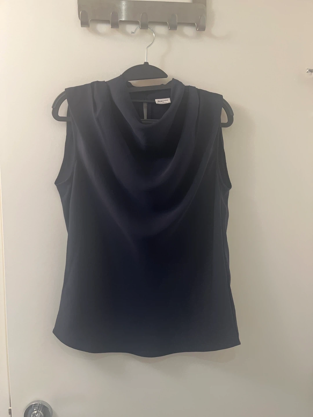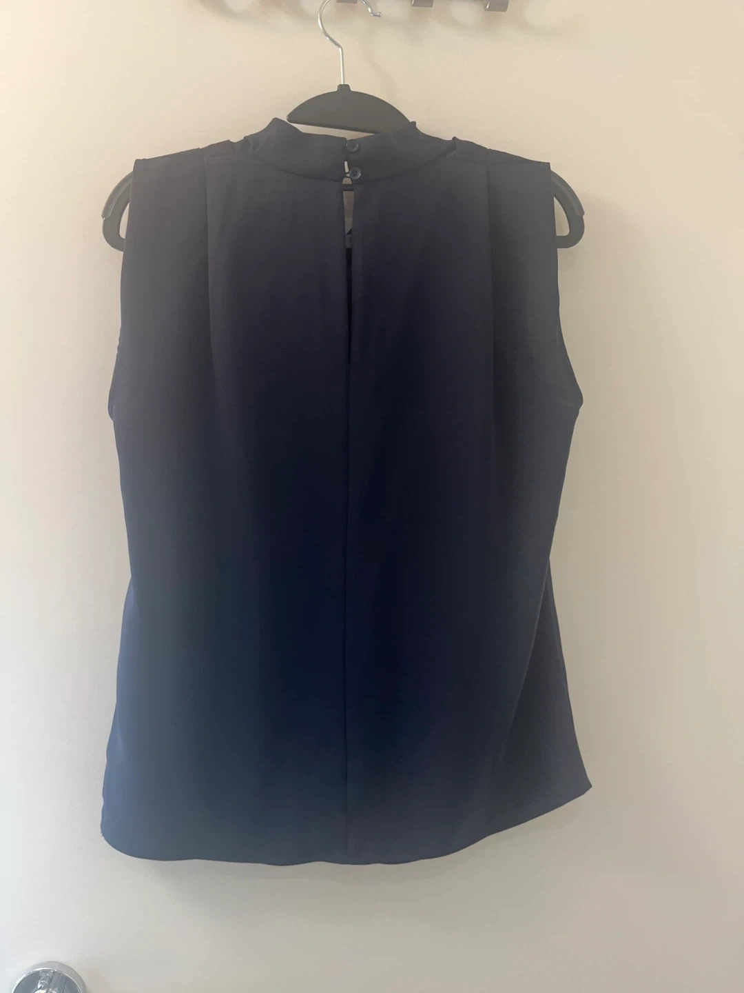 Selling a stylish navy sleeveless blouse from Babaton. It's in great condition and a size XXS. Perfect for layering or wearing on its own!