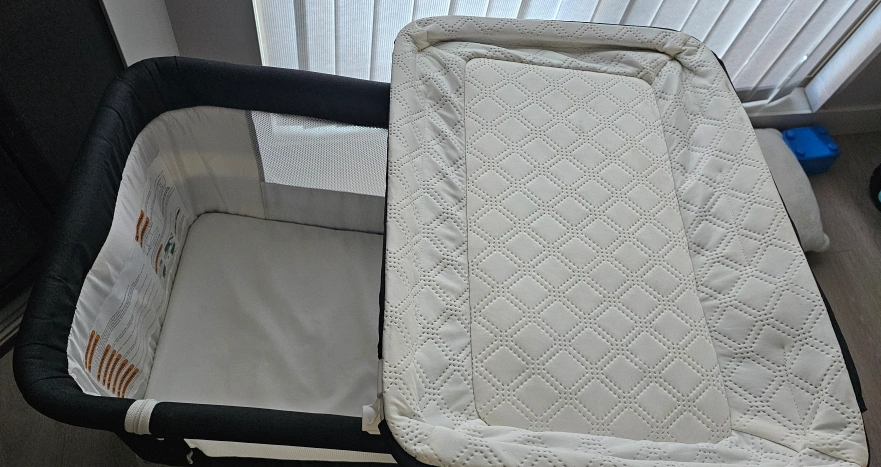 Selling a bedside bassinet in excellent condition! It features an adjustable height with 5 different positions, making it suitable for different height adult beds. It can also be used as a changing table and has a washable cover. The adjustable angle design helps prevent reflux in babies. The bassinet can also be converted to a cradle mode.