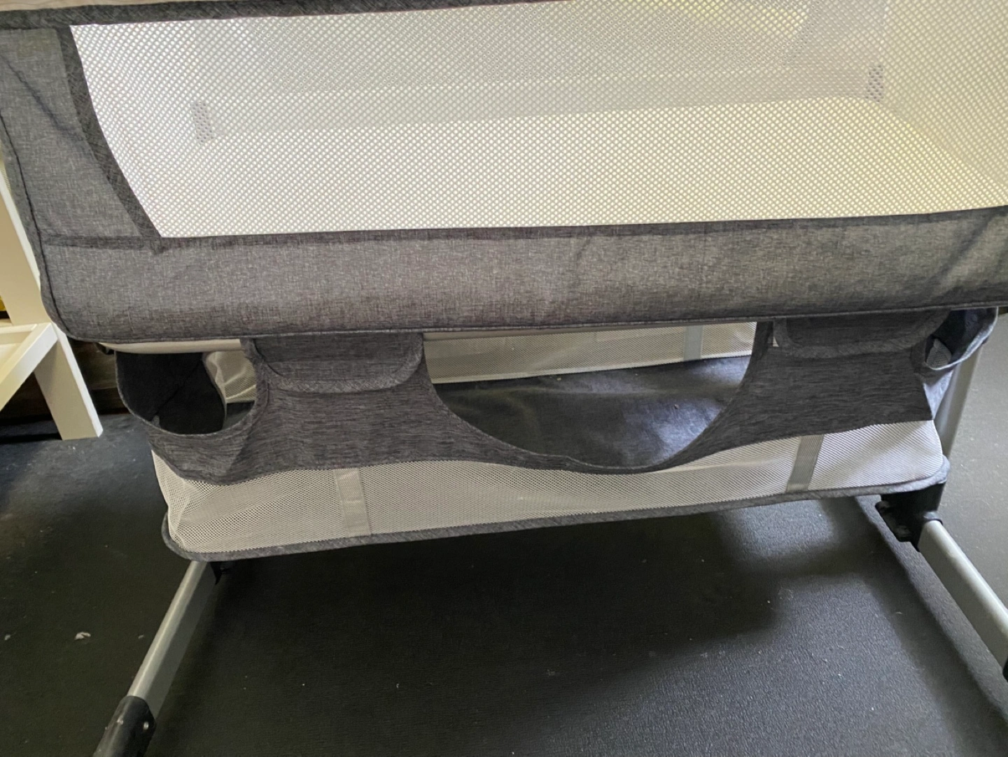 Very much new Baby Bassinets Bedside Portable Baby Crib with Storage Basket Easy Folding Bedside with Breathable Mattress Adjustable Height Grey